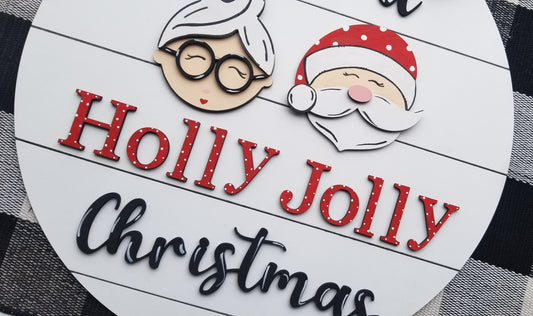 Holly Jolly Santa & Mrs. Claus Christmas Door Hanger