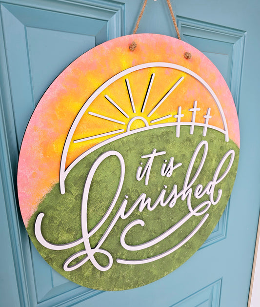 It Is Finished Sunrise Door Hanger