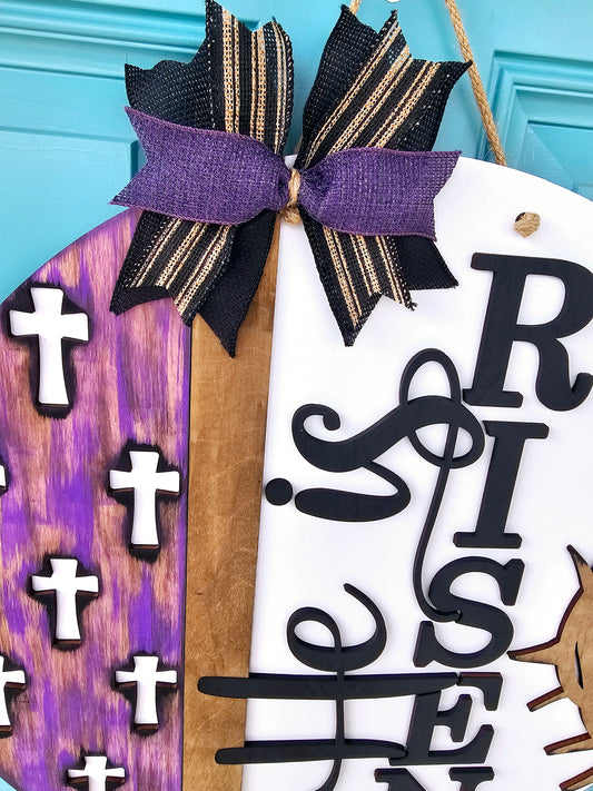 He is Risen Side Crosses Door Hanger