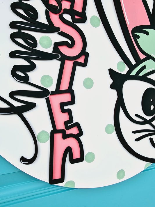 Happy Easter Cheerful Bunny Door Hanger