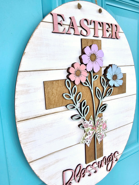 Easter Blessings Floral Cross Door Hanger