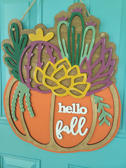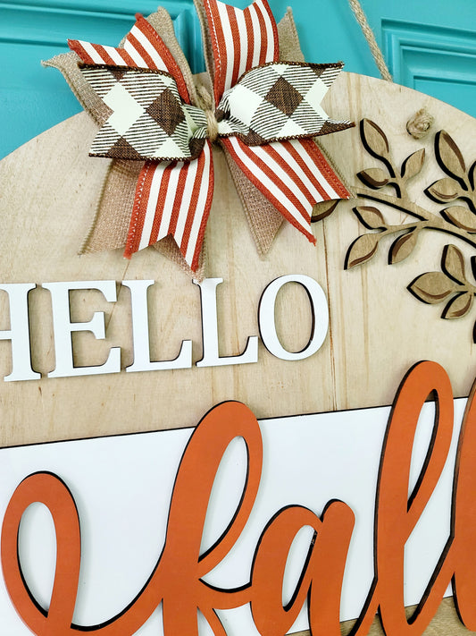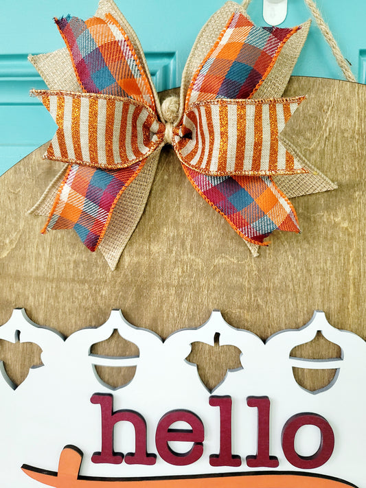Hello Fall Pumpkin & Leaves Porch Leaner