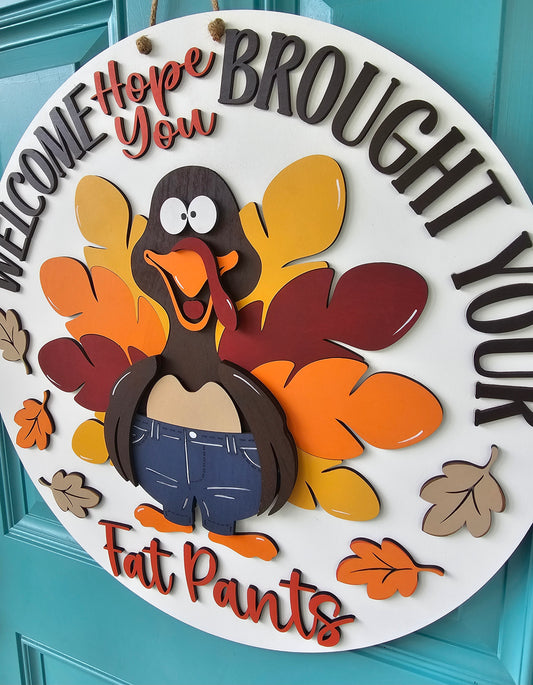 Welcome Hope Your Brought Your Fat Pants Turkey Door Hanger