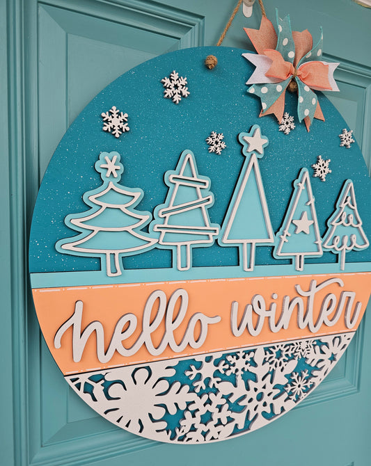Hello Winter Tree/Snowflake Door Hanger