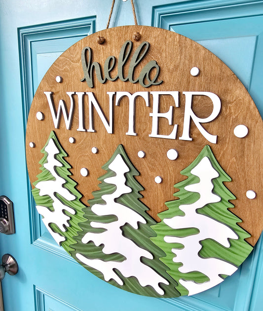 Hello Winter Pine Tree Door Hanger