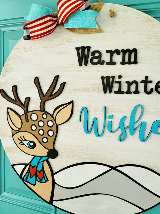Warm Winter Wishes Deer Door Hanger