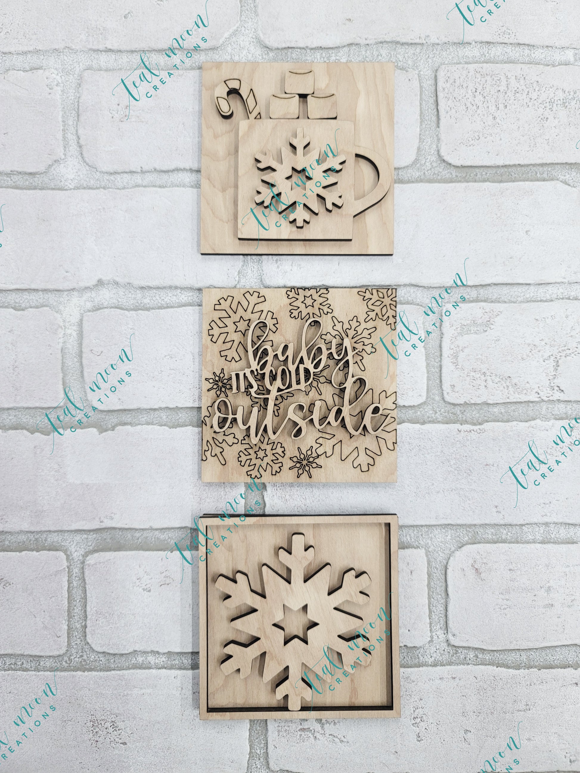 Looking for a Winter set for your interchangeable ladder? These come in a set of 3 & measure 4.25" x 4.25" each tile. They come as a painted set OR a DIY blank set for you to paint however you would like. Collect all the sets for all the seasons/holidays! These make for awesome gifts & great DIY girls get togethers. Ladder sold separately.