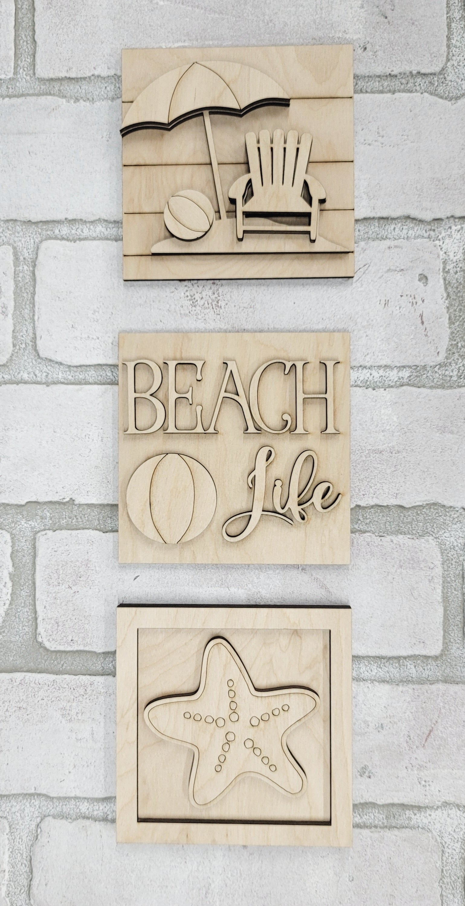 Looking for a beach set for your interchangeable ladder? These come in a set of 3 & measure 4.25" x 4.25" each tile. They come as a painted set OR a DIY blank set for you to paint however you would like. Collect all the sets for all the seasons/holidays! These make for awesome gifts & great DIY girls get togethers. Ladder sold separately.