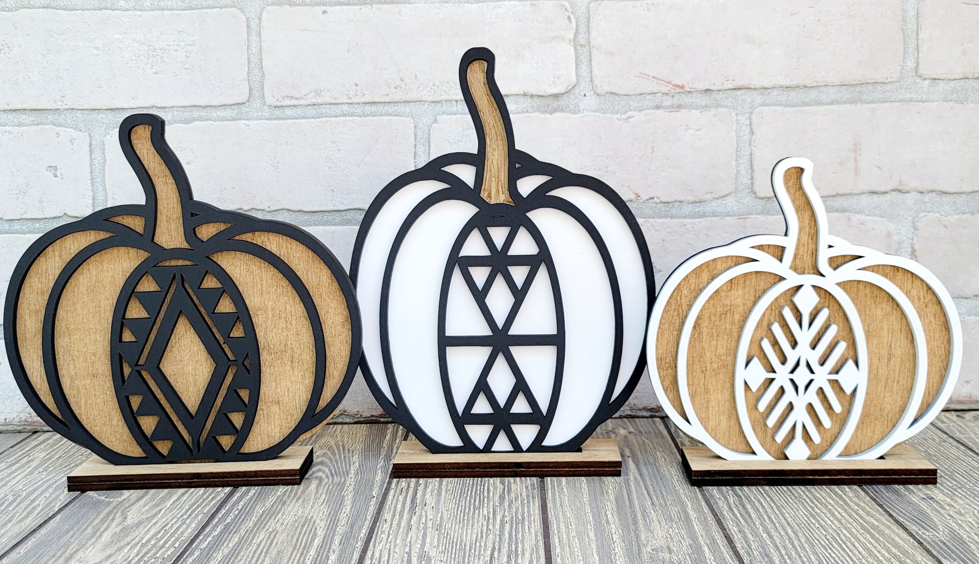 How cute is this trio?! Fun way to add fall to any room of your home! They measure7", 8" & 9" tall. Painted options come as pictured. There is also a DIY Blank option to paint these pumpkins whatever color you would like! The possibilities are endless!
