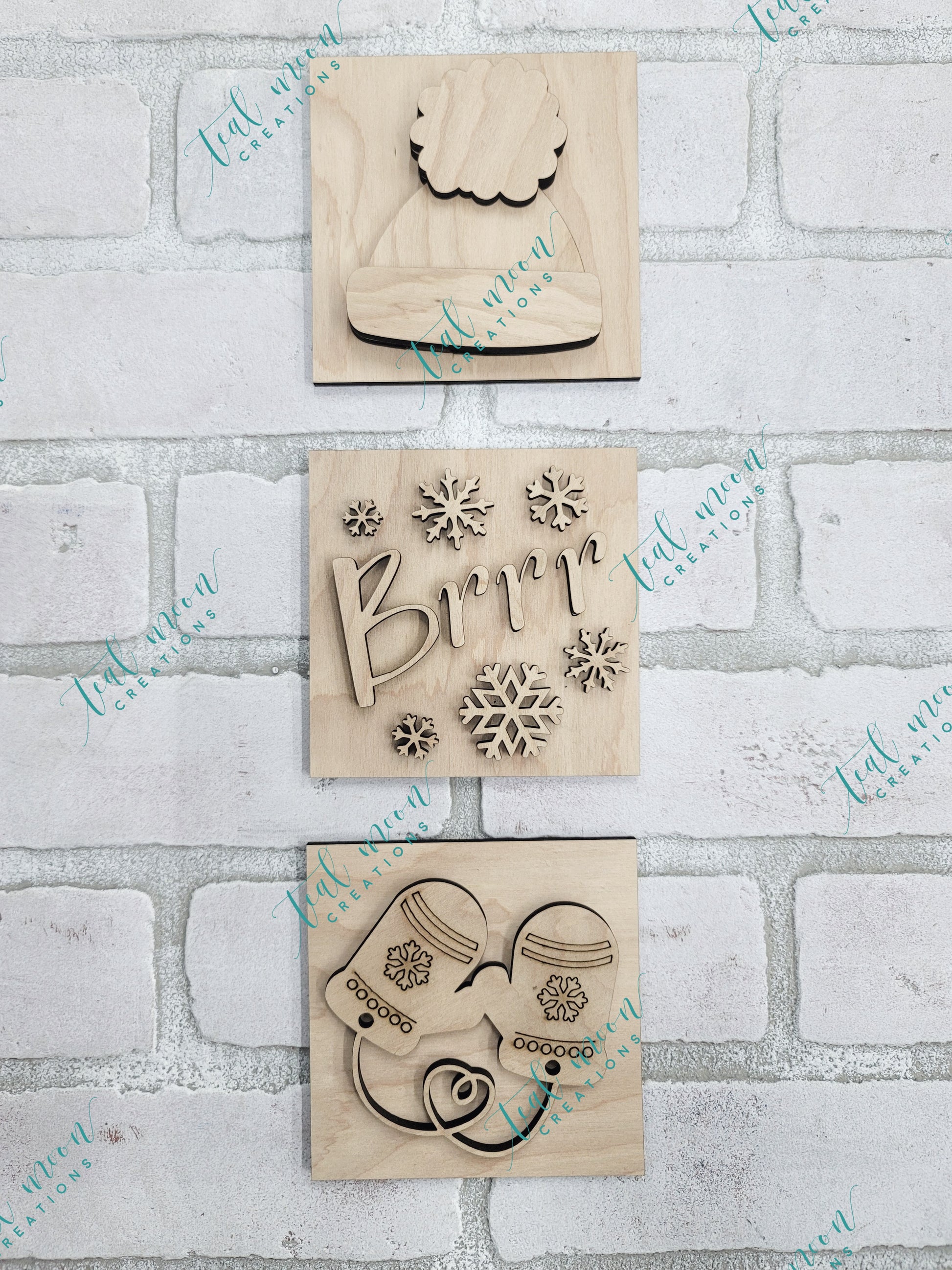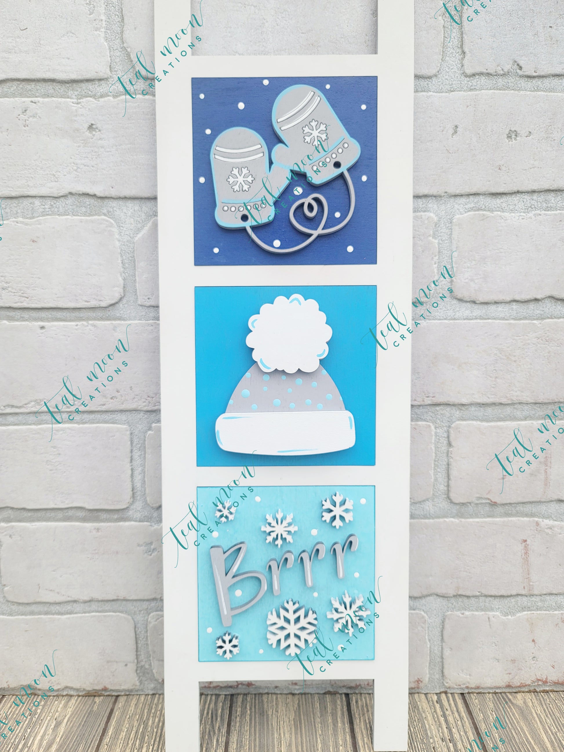 Looking for a Winter set for your interchangeable ladder? These come in a set of 3 & measure 4.25" x 4.25" each tile. They come as a painted set OR a DIY blank set for you to paint however you would like. Collect all the sets for all the seasons/holidays! These make for awesome gifts & great DIY girls get togethers. Ladder sold separately.