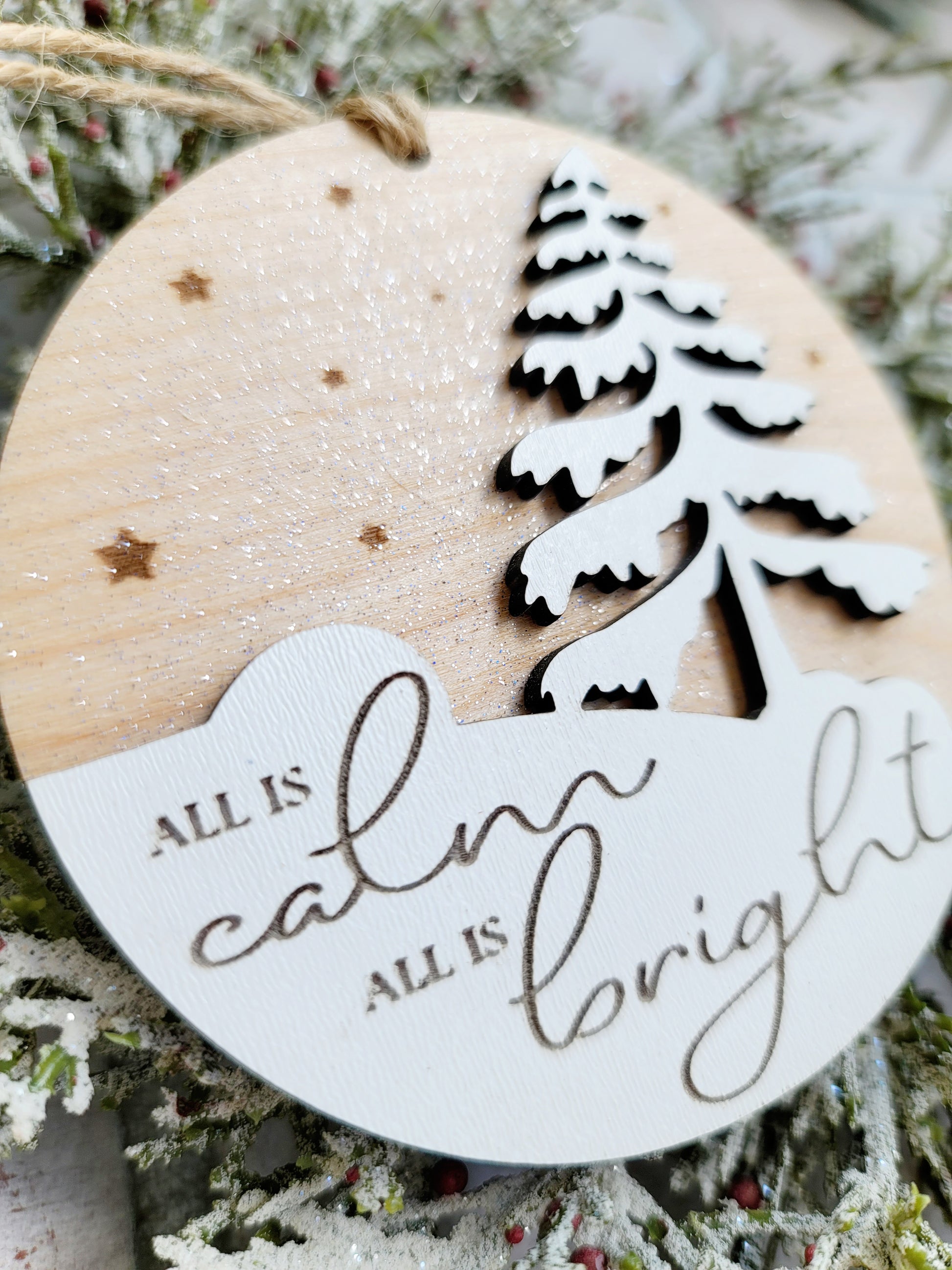 Simple & Classic Ornament! This ornament measures 3.5" in diameter and comes ready to hang! This is offered as a painted ornament that comes ready to hang with a small bow OR a blank ornament (wood piece only) if you're feeling crafty or you're wanting to make your own gift.