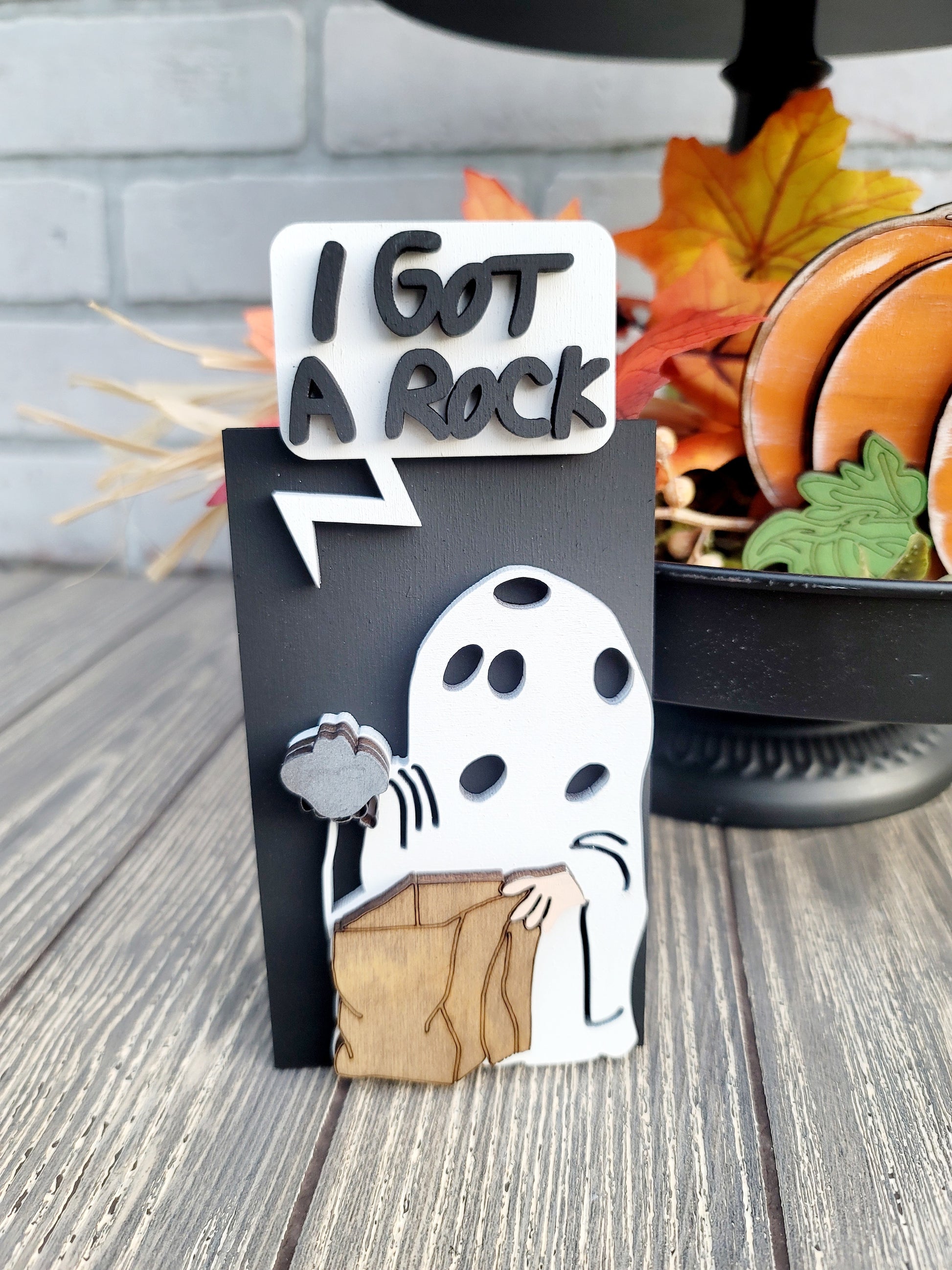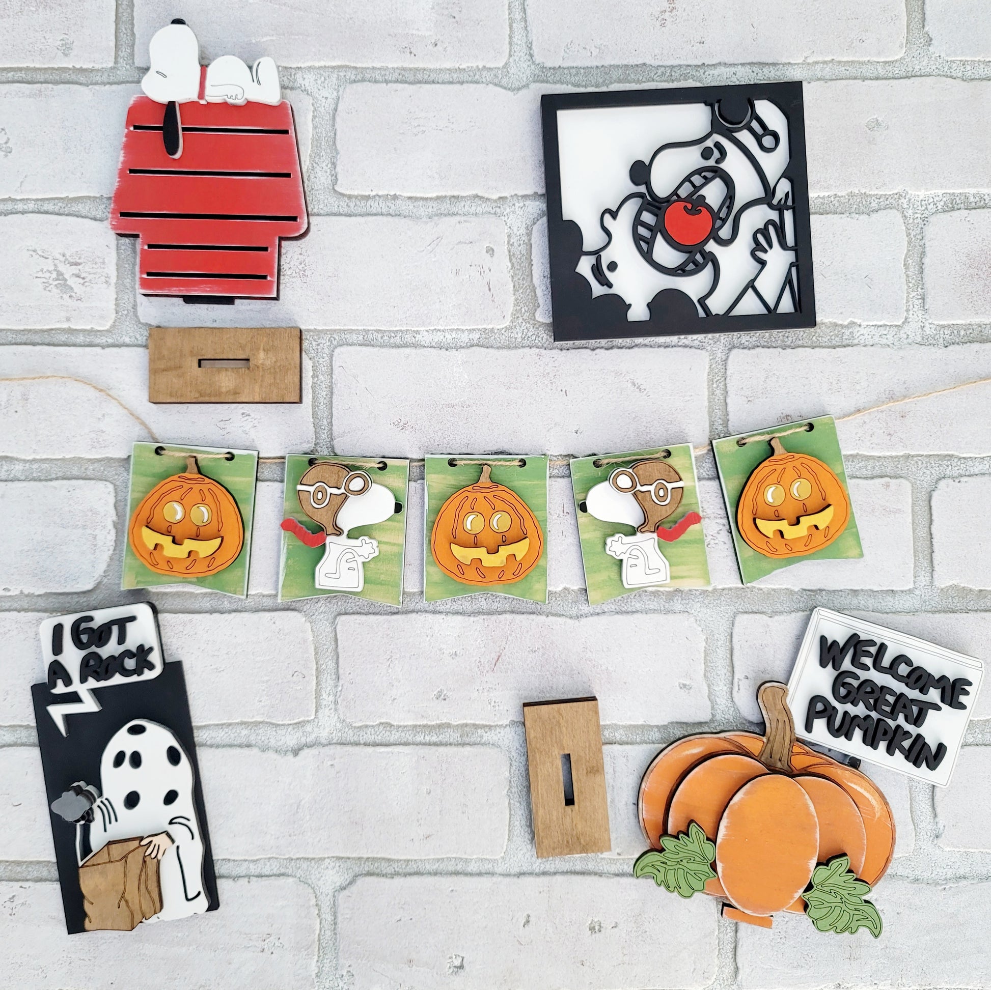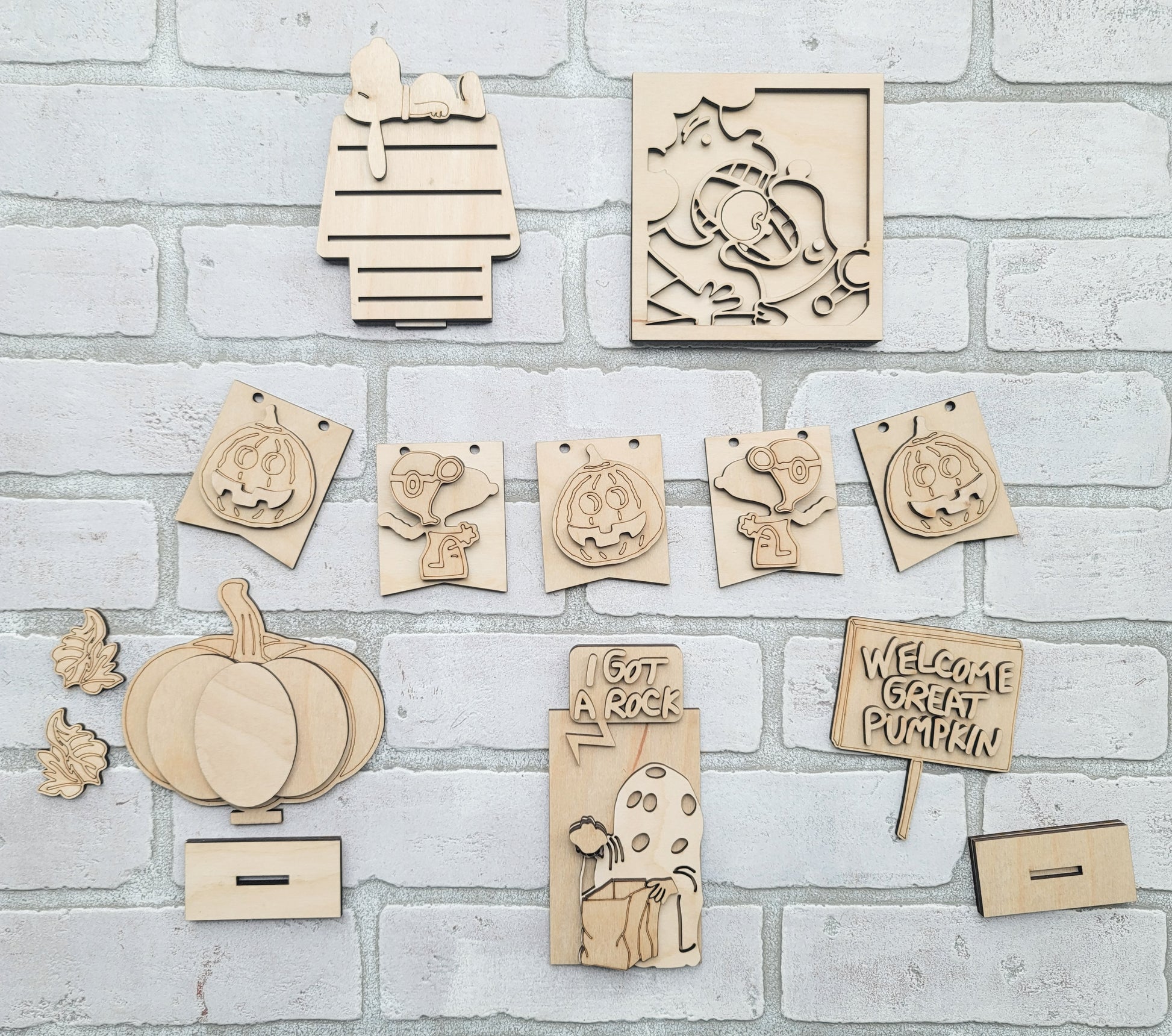 Love Charlie Brown & Snoopy?! This would make the perfect Cfall addition to any room! This is a 5 piece set (wood pieces only- no props or tray) and is made with 1/4" wood. Each piece has different 3D elements. This is offered as a painted set or a blank set (blank set is all wood pieces ONLY) if your feeling crafty or you're wanting to plan a kids night!