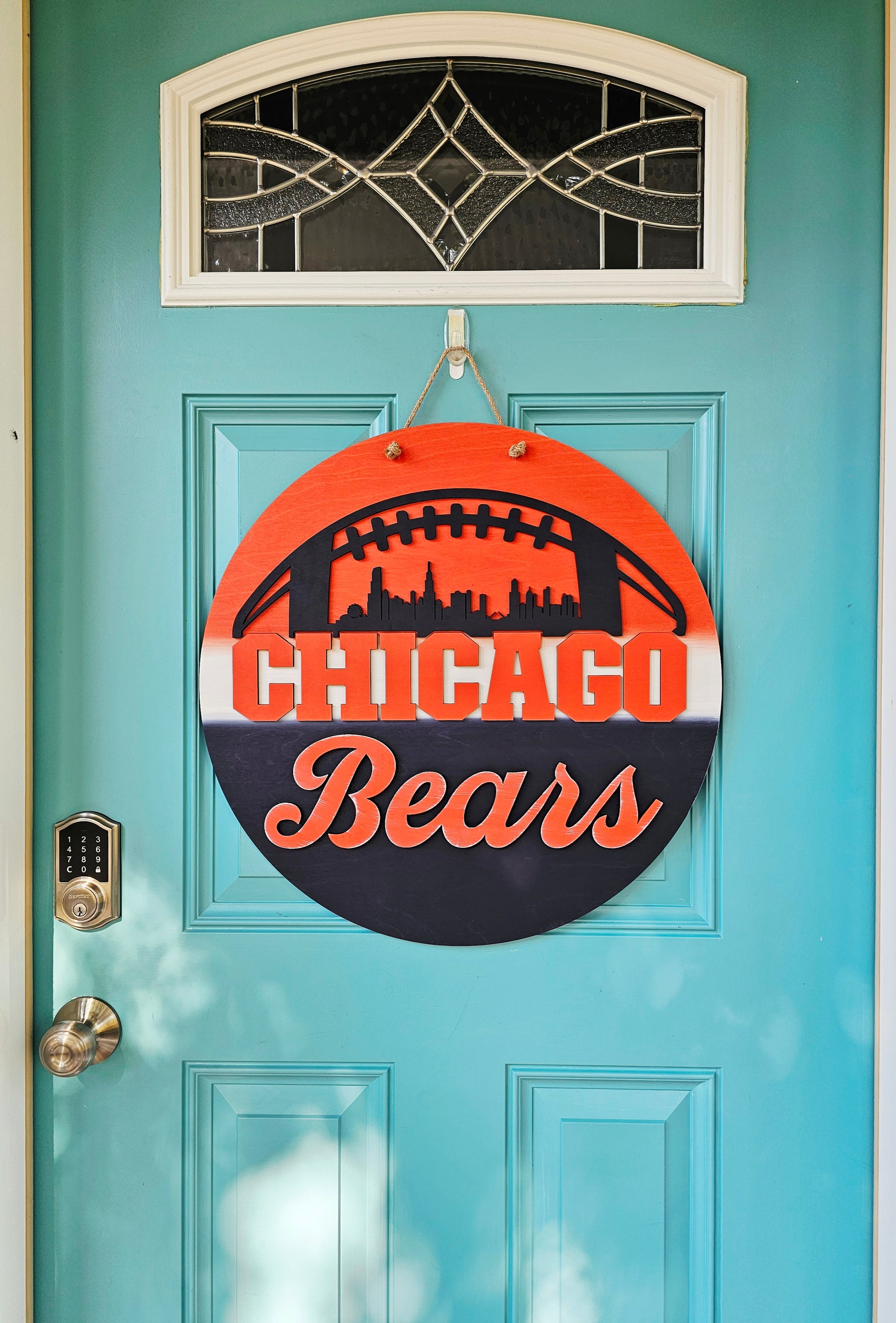Bears fan?! This would make the perfect fall addition to any front door! This door hanger is 22" tall and is made with 1/4" wood. This hanger also includes the multicolored bow that is pictured if you buy completed. There is also an option to buy blank to get crafty or even host you own paint party with friends and family. (Blank option does not come with bow materials, just blank wood pieces)