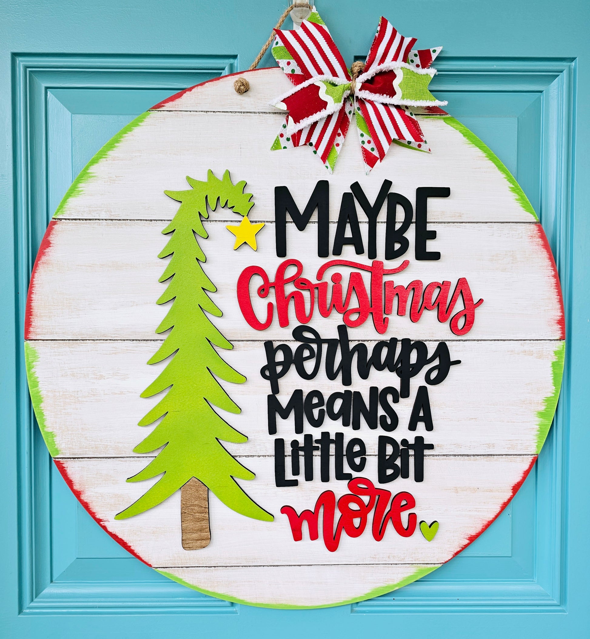 Grinch Fan?! Perfect addition to any front door for the holidays! This door hanger is 22" tall and is made with 1/4" wood. This hanger also includes the multicolored bow that is pictured if you buy completed. There is also an option to buy blank to get crafty or even host you own paint party with friends and family. (Blank option does not come with bow materials, just blank wood pieces)