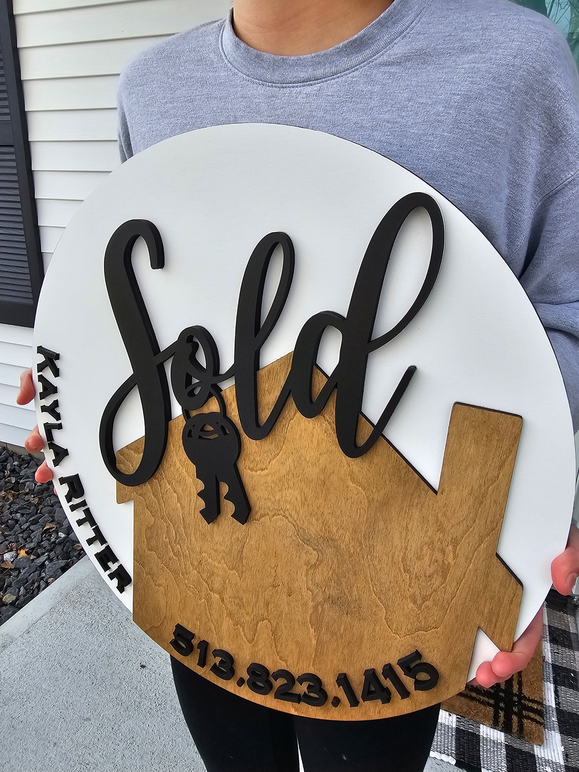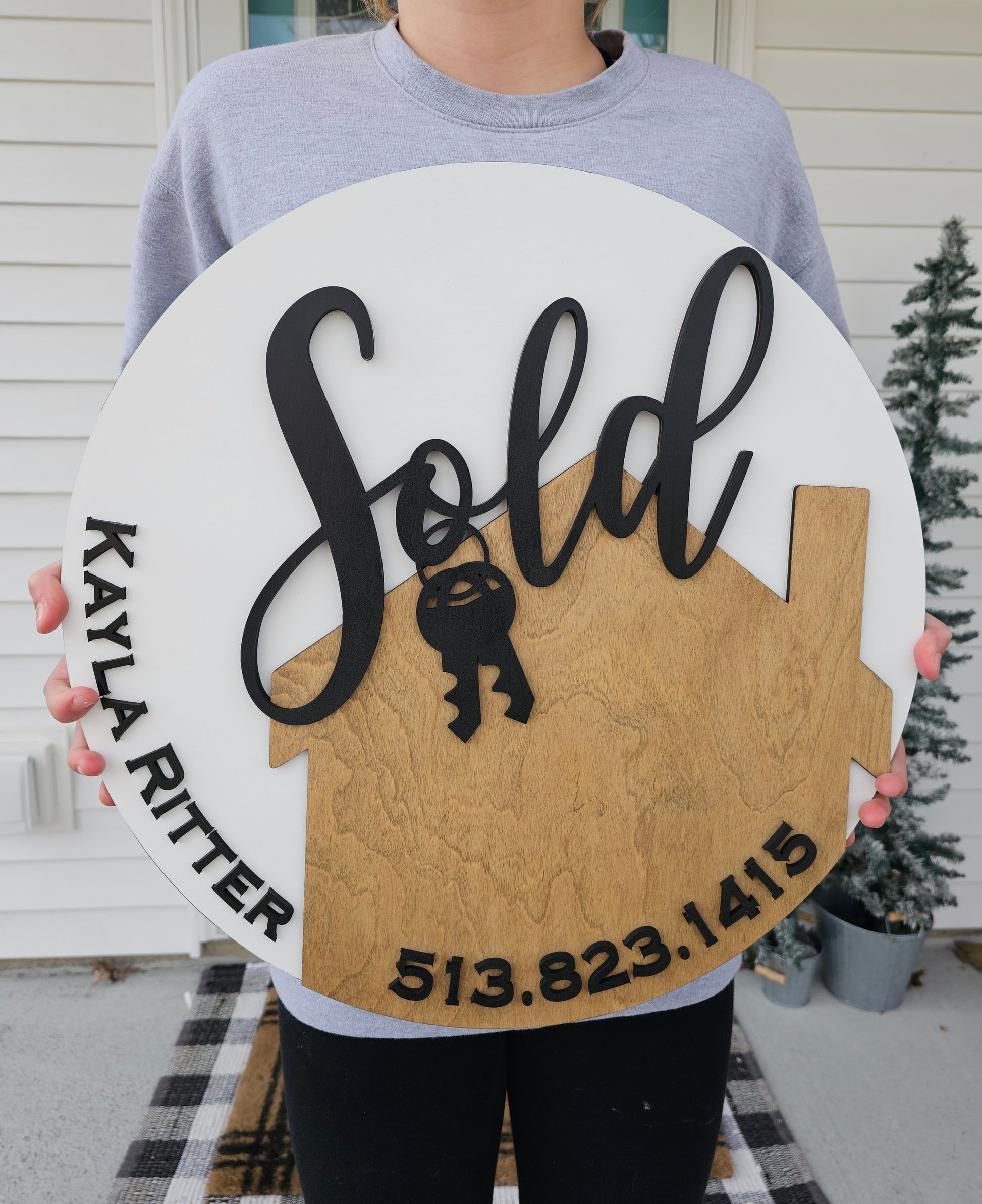 Looking for a closing sign but want options?! This is available as a double-sided or one-sided personalized closing sign. It measures 18' in diameter and comes ready to go! You are able to personalize with your name & number!