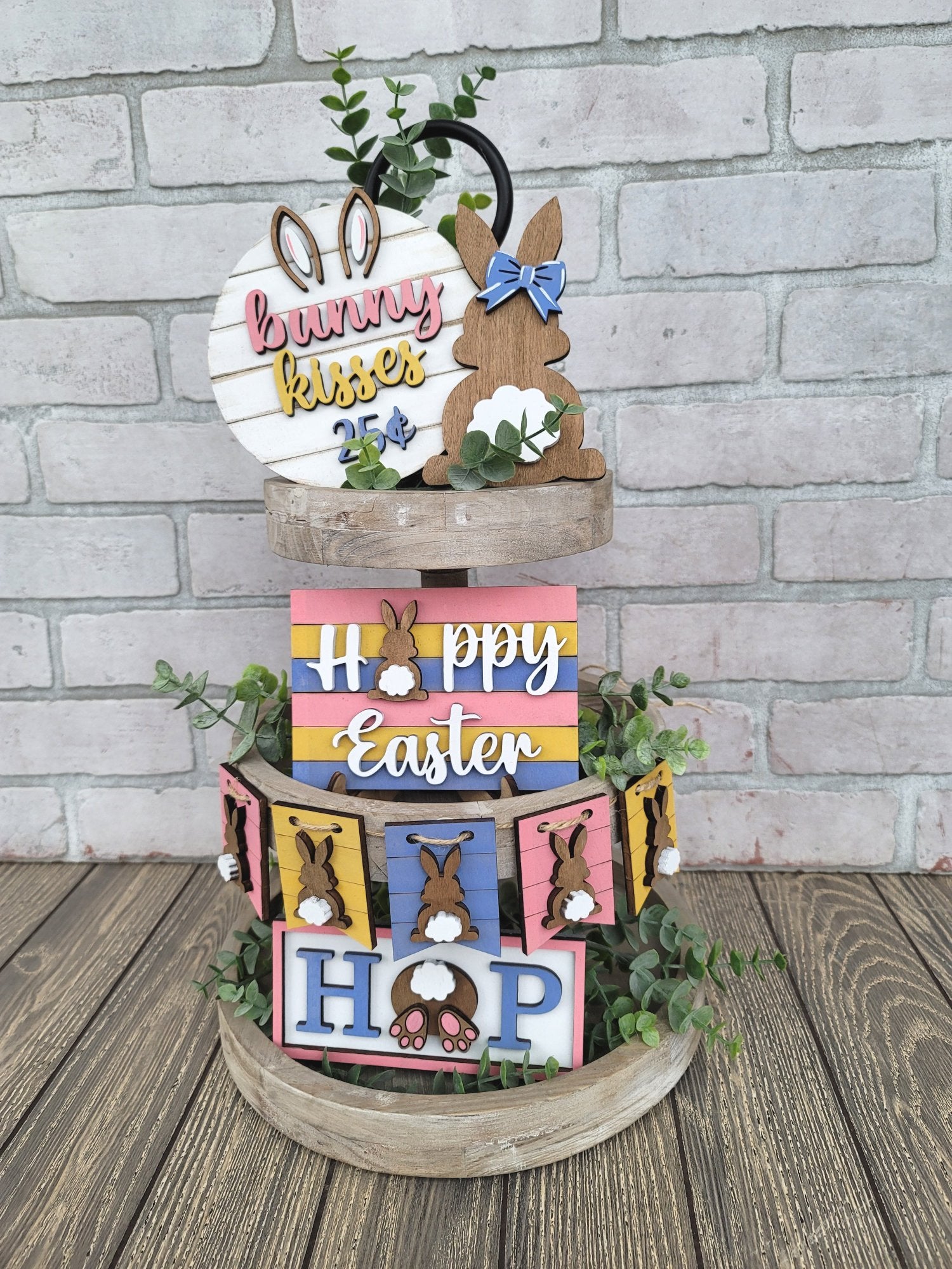 How adorable is this Easter tiered tray set?! This would make the perfect Easter addition to any room! This is a 5-piece set (wood pieces only- no props or tray) and is made with 1/4" wood. Each piece has different 3D elements. This is offered as a painted set or a blank set if you're feeling crafty or you're wanting to plan a girl's night!