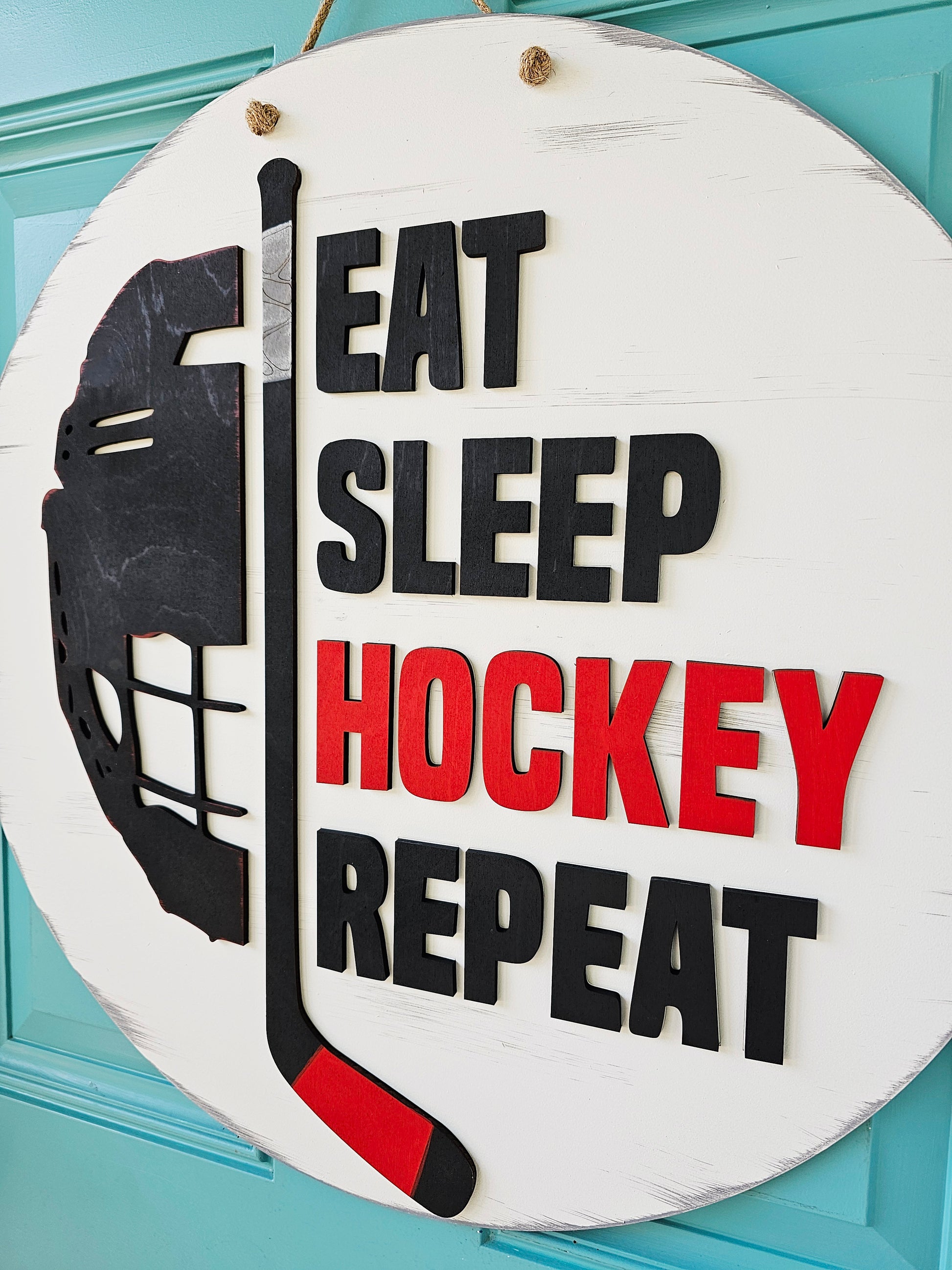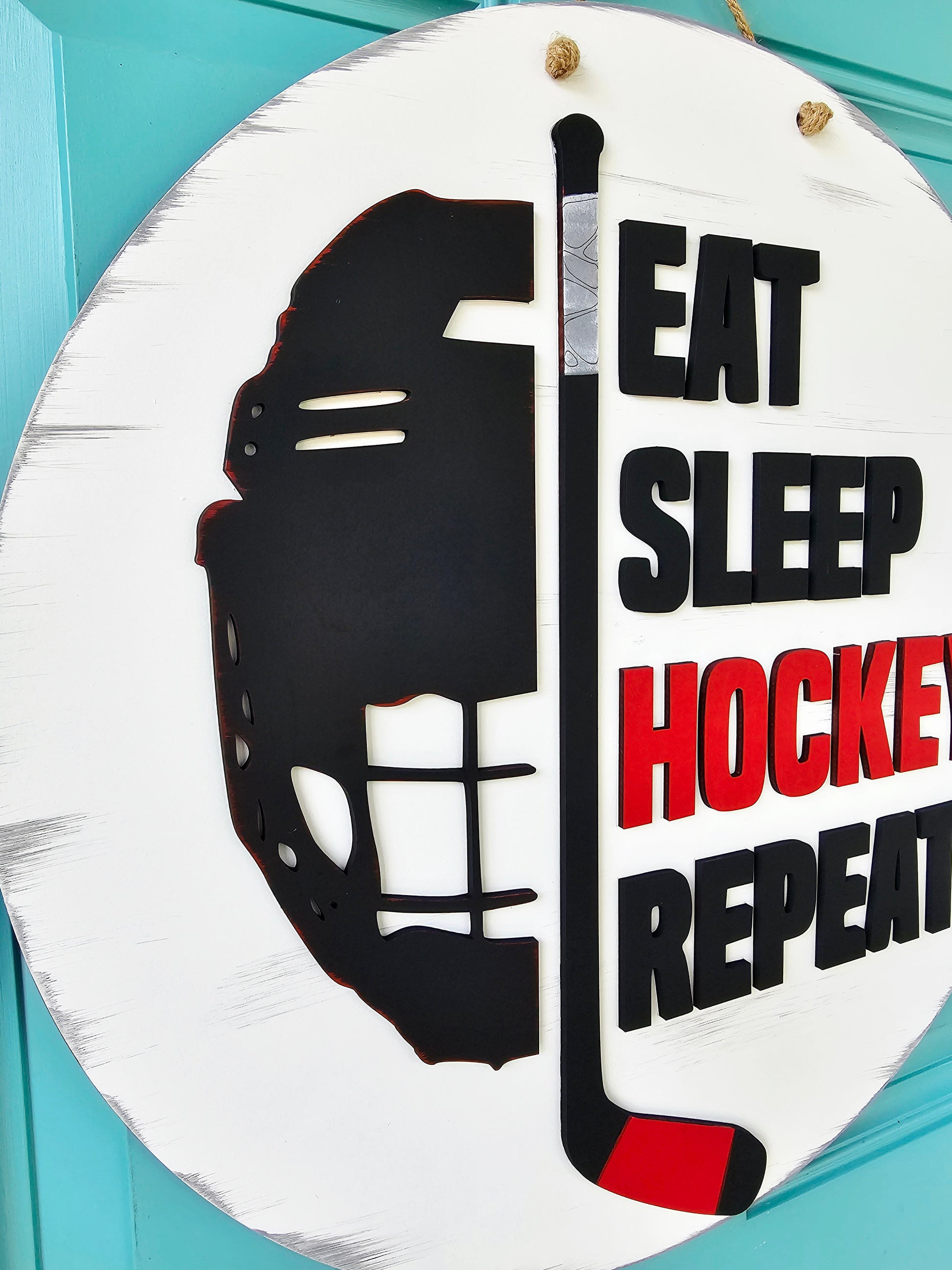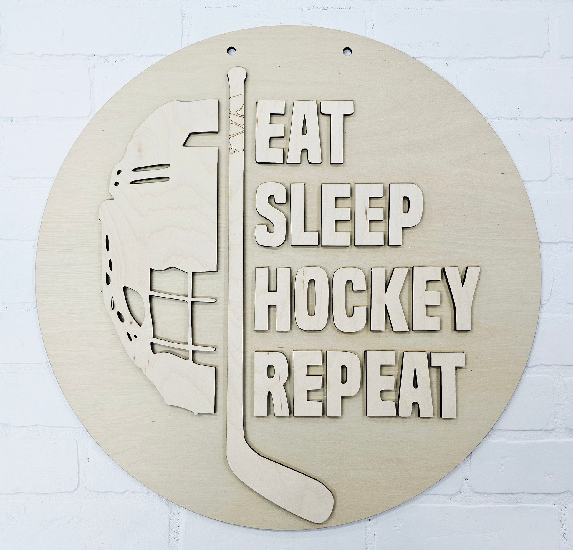 For all my Hockey fans! This would make the perfect addition to any front door! This door hanger is 22" tall and is made with 1/4" wood. There is also an option to buy blank to get crafty or even host you own paint party with friends and family. (Blank option does not come with bow materials, just blank wood pieces)