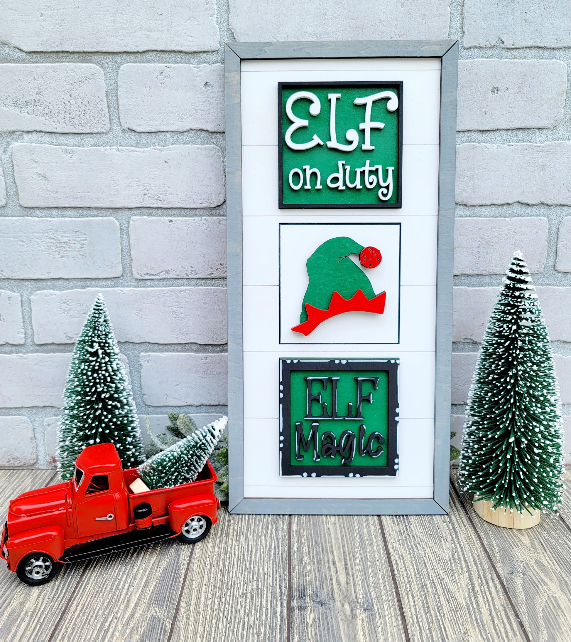 Looking for a Christmas Elf Magic set for your interchangeable ladder? These come in a set of 3 & measure 4.25" x 4.25" each tile. They come as a painted set OR a DIY blank set for you to paint however you would like. Collect all the sets for all the seasons/holidays! These make for awesome gifts & great DIY girls get togethers. Frame sold separately.