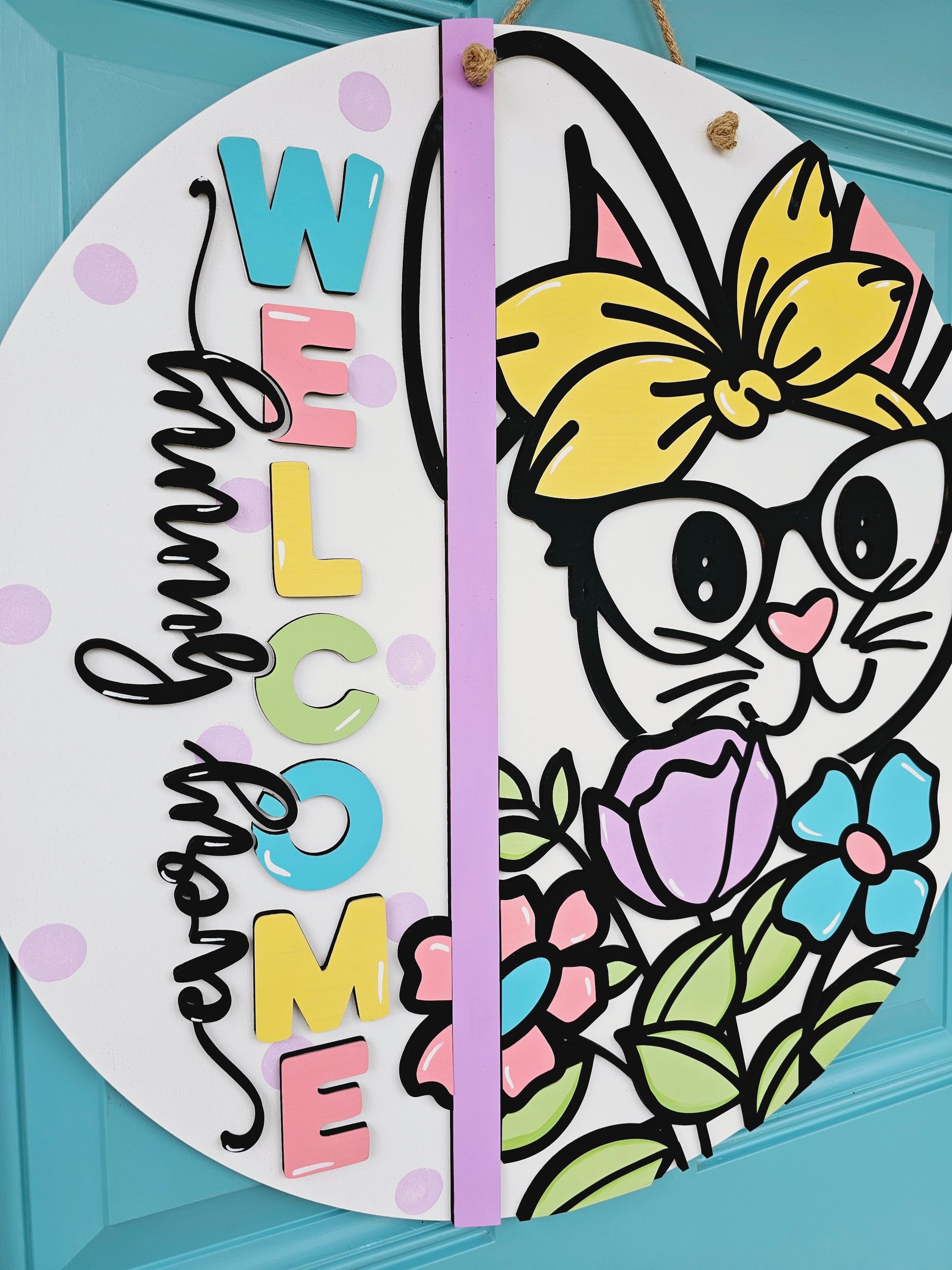 How cute is this spring door hanger?! Perfect addition to any front door for spring! This door hanger is 22" tall and is made with 1/4" wood. There is also an option to buy blank to get crafty or even host you own paint party with friends and family. (Blank option does not come with bow materials, just blank wood pieces)