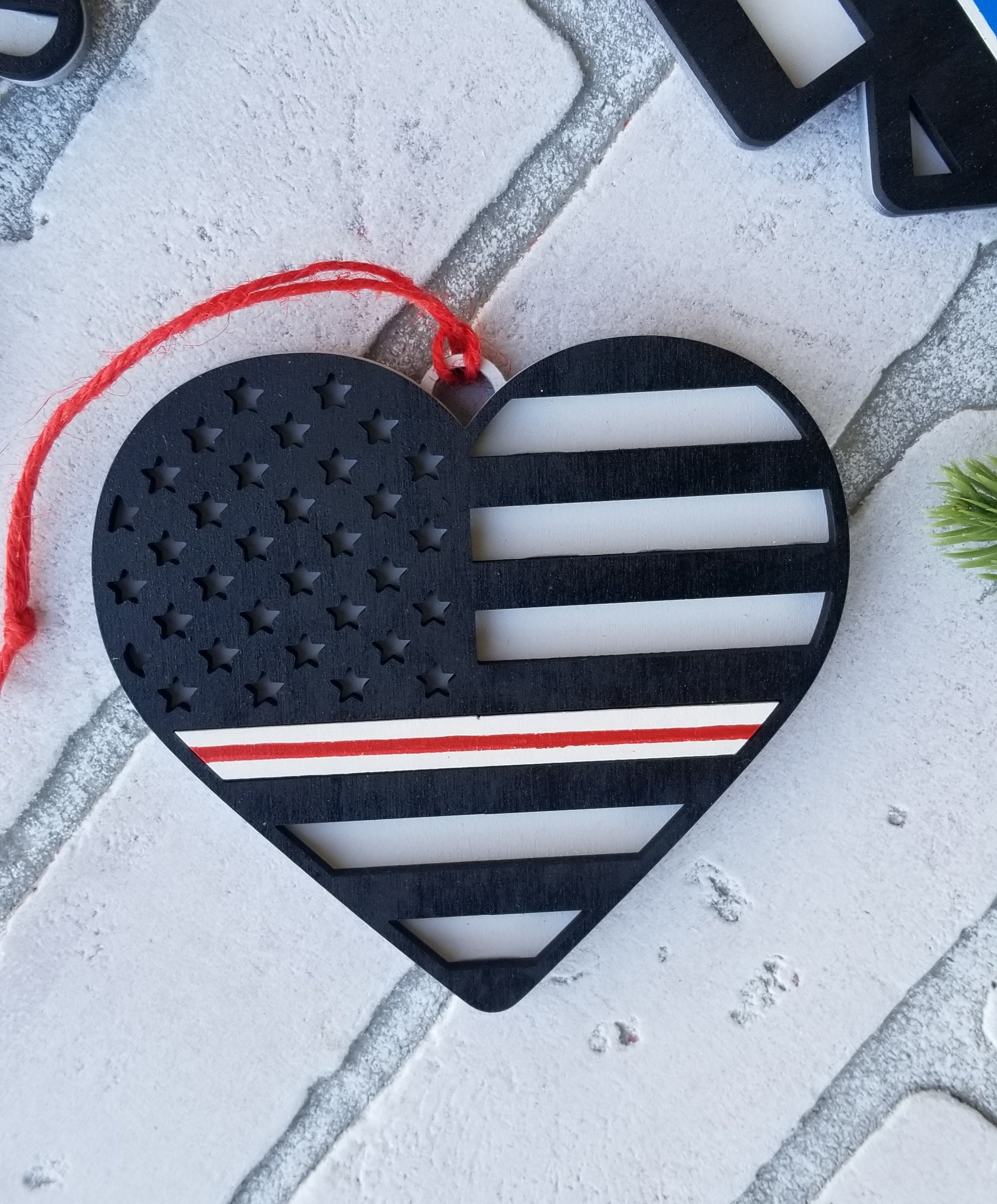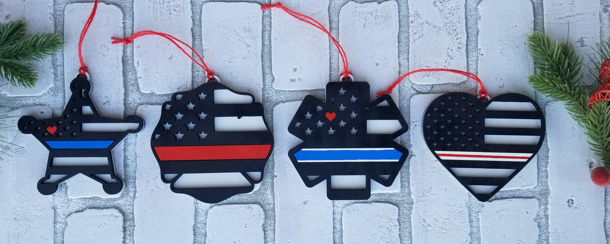 This ornament makes the perfect addition for any first responder on your list. A little way to show you appreciation for all they do! There is an option for Police (Solid Blue Line), Fire (Solid Red Line), Nurses (Red line w/ white stripe) & EMS (Blue stripe w/ Thin white lines). These each measure 4". These are also offered as a blank ornament (wood piece only) if you're feeling crafty or you're wanting to make your own gift.