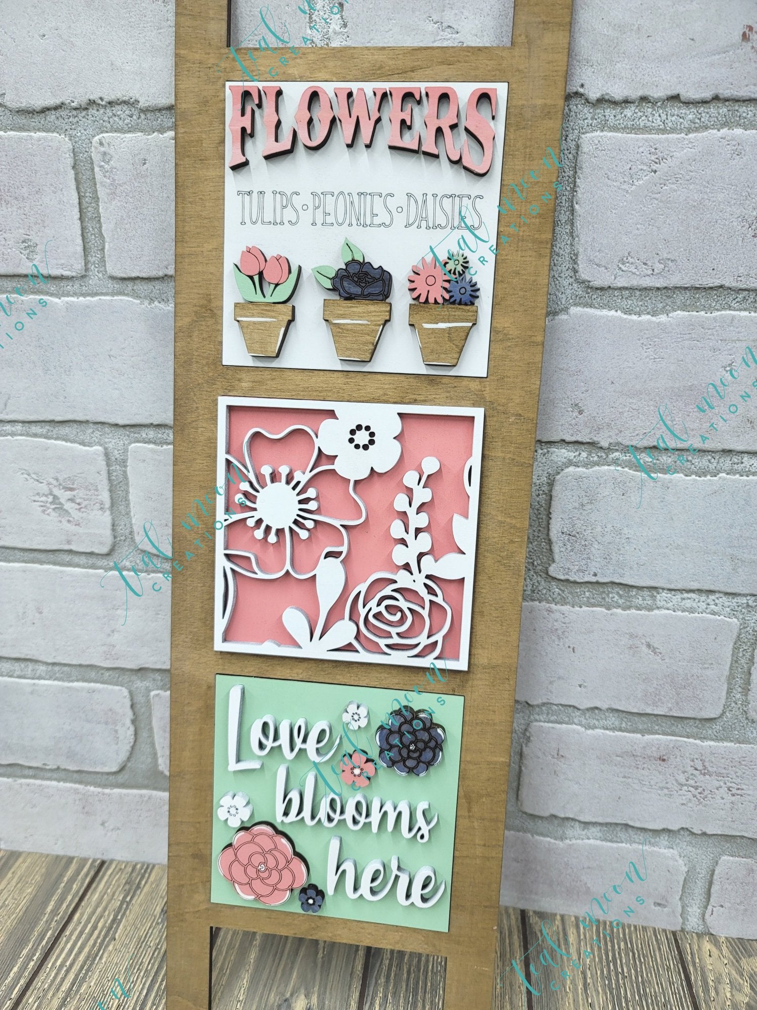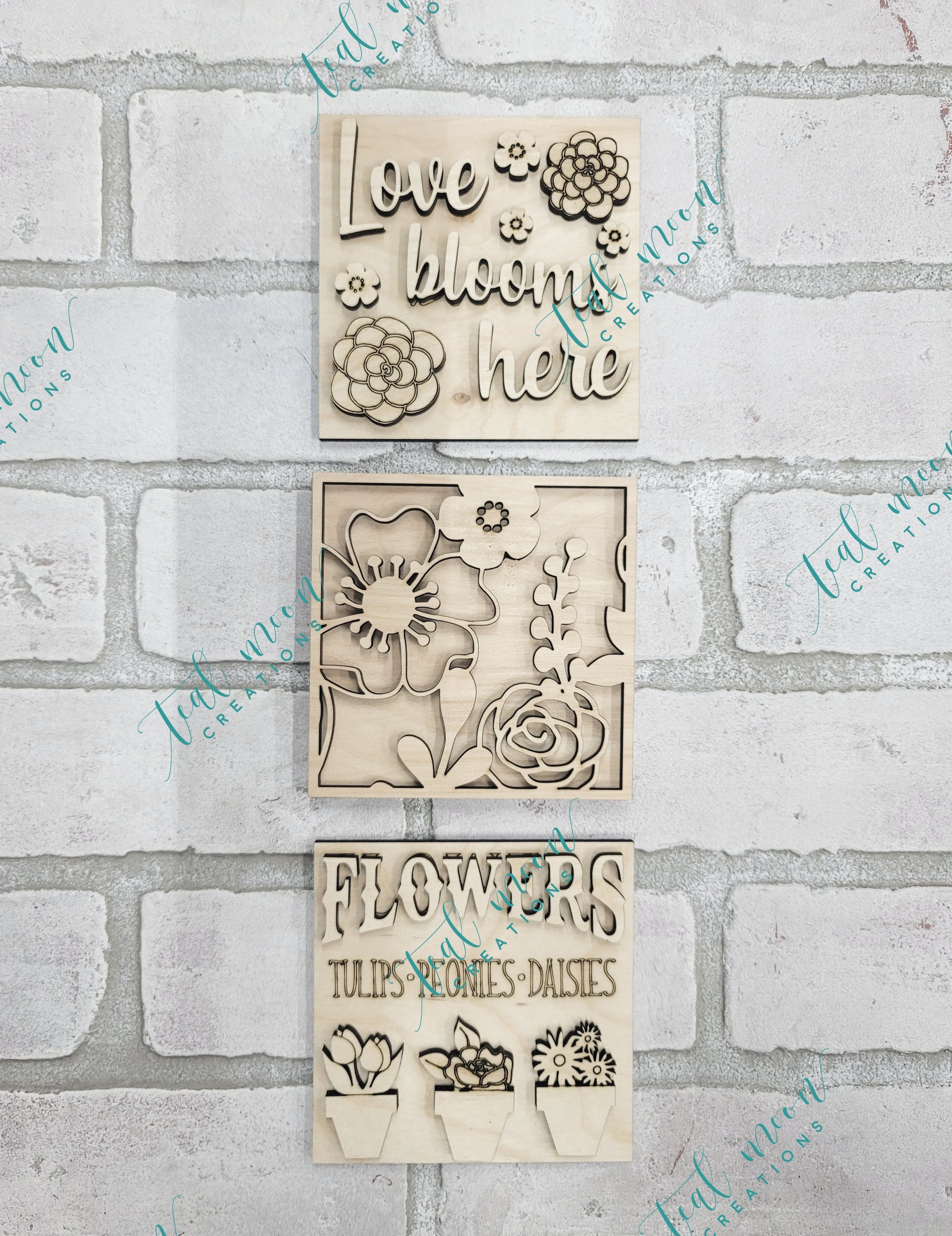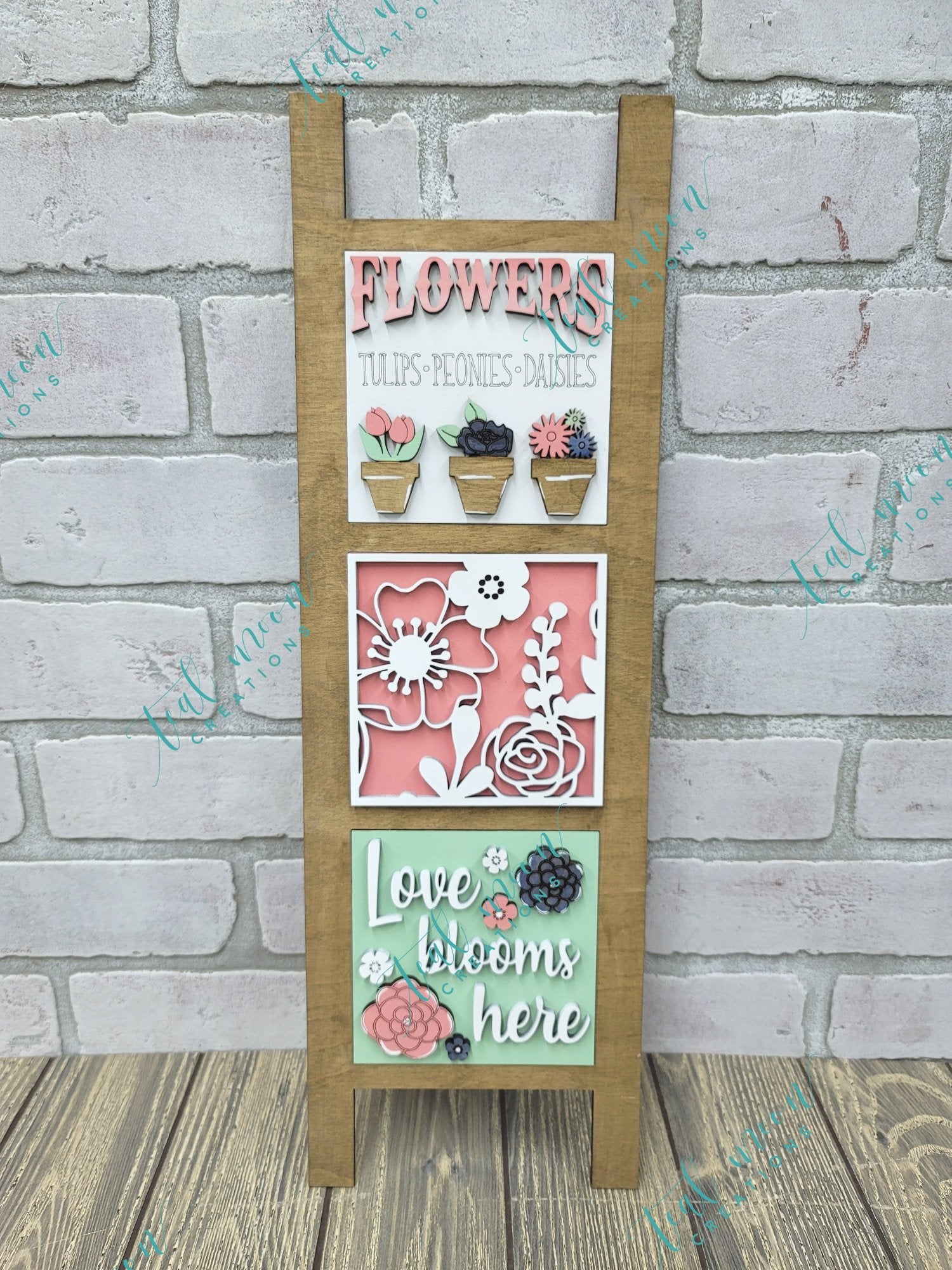 Looking for a spring set for your interchangeable ladder? These come in a set of 3 & measure 4.25" x 4.25" each tile. They come as a painted set OR a DIY blank set for you to paint however you would like. Collect all the sets for all the seasons/holidays! These make for awesome gifts & great DIY girls get togethers. Ladder sold separately.