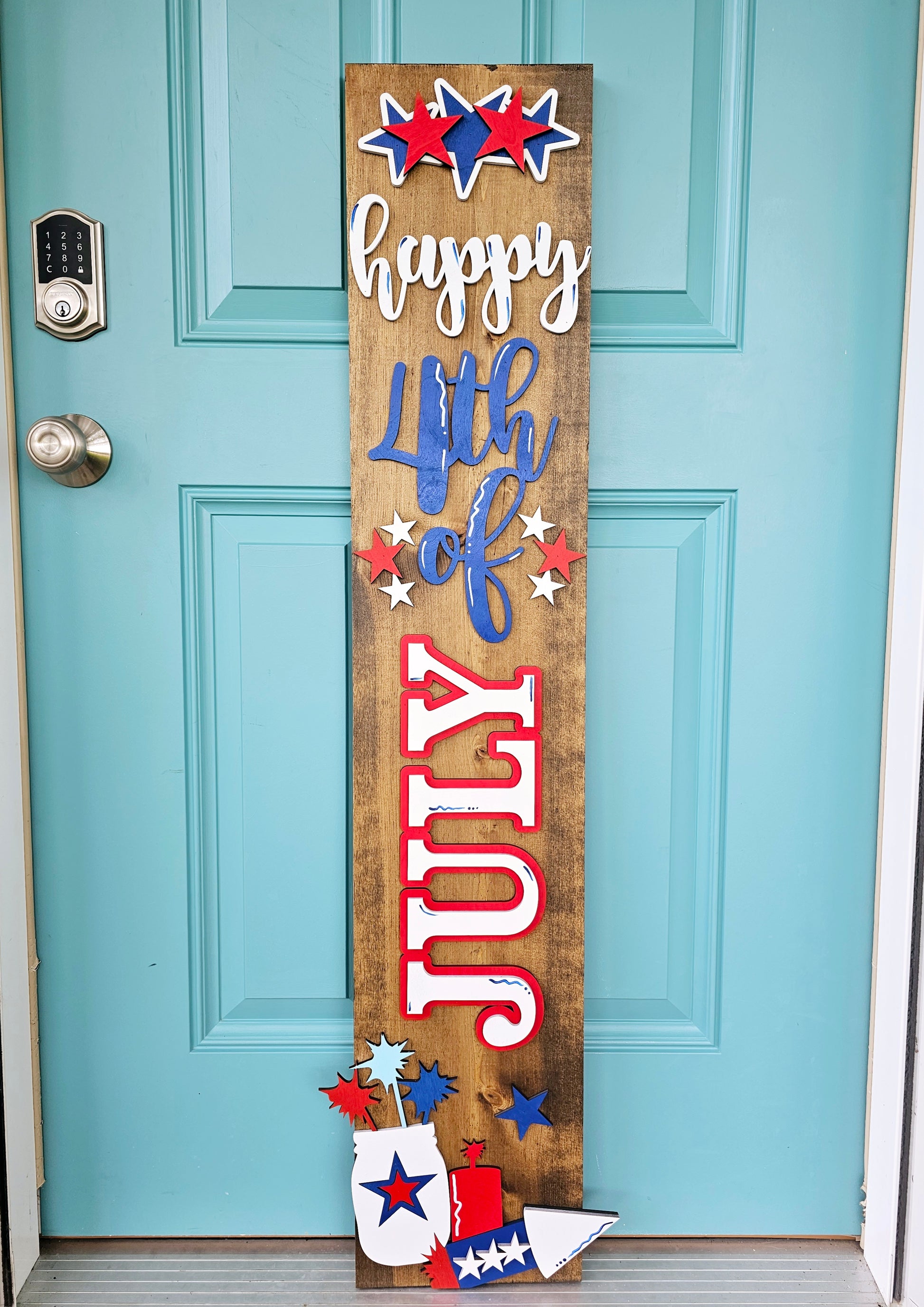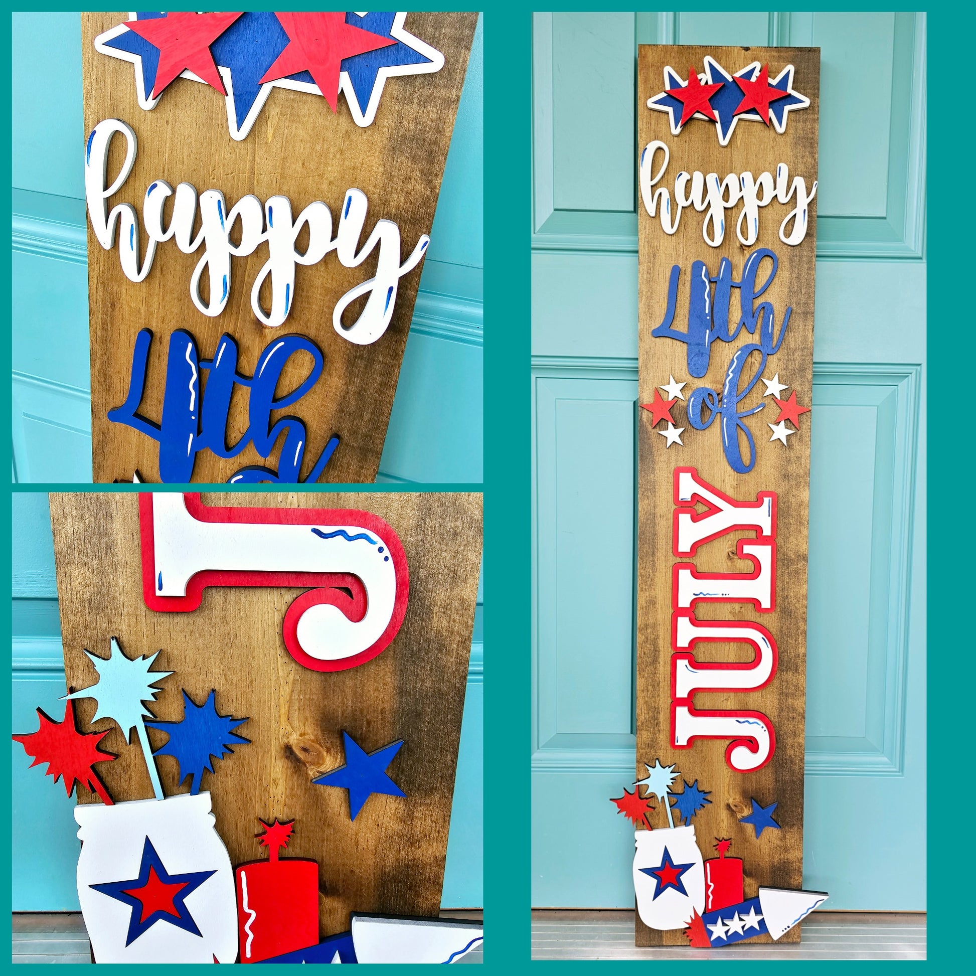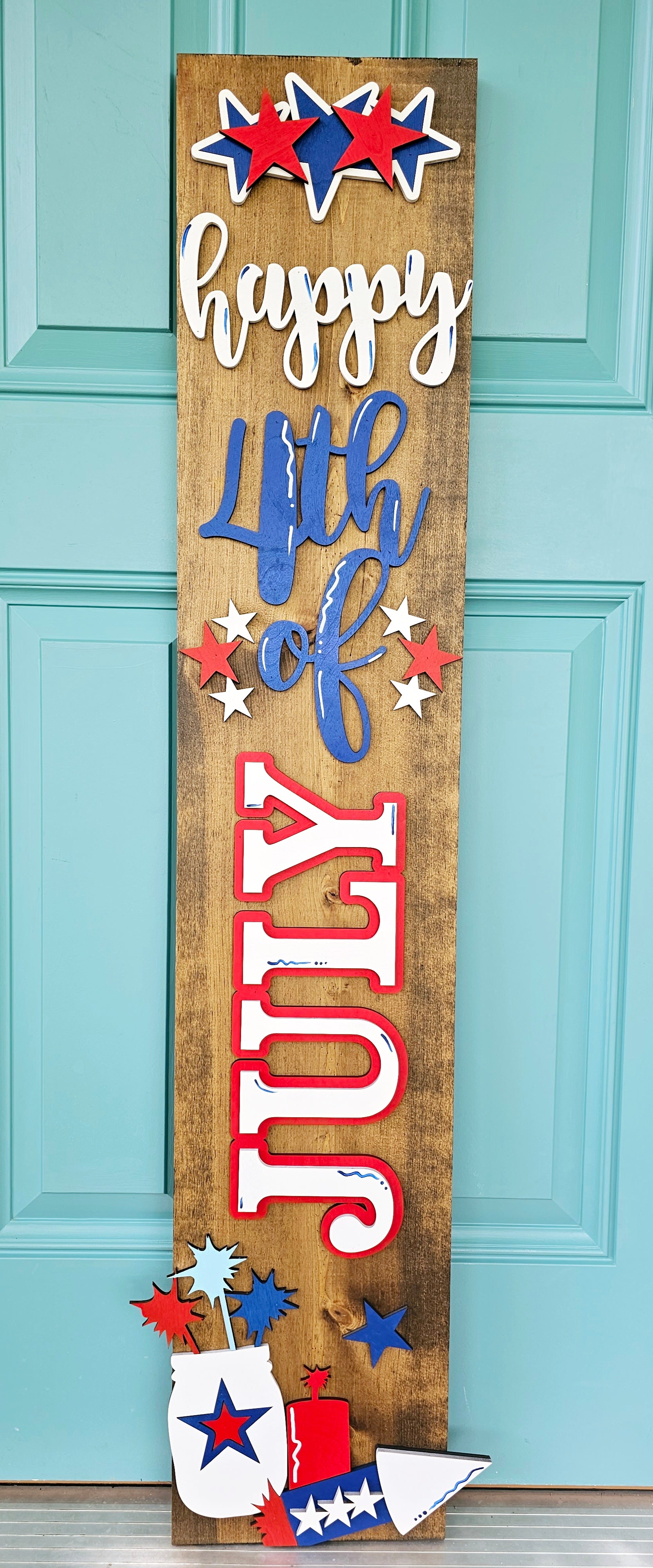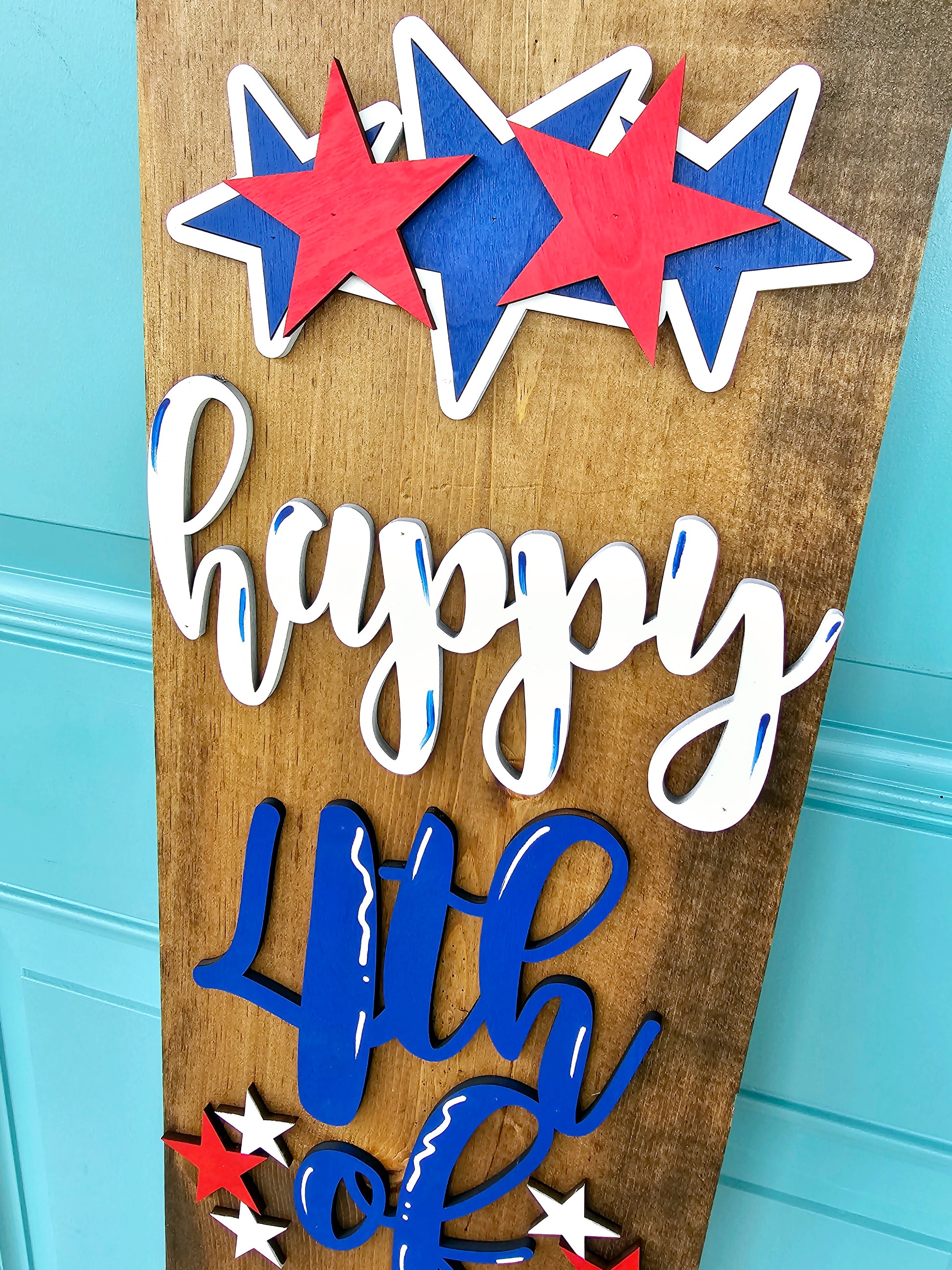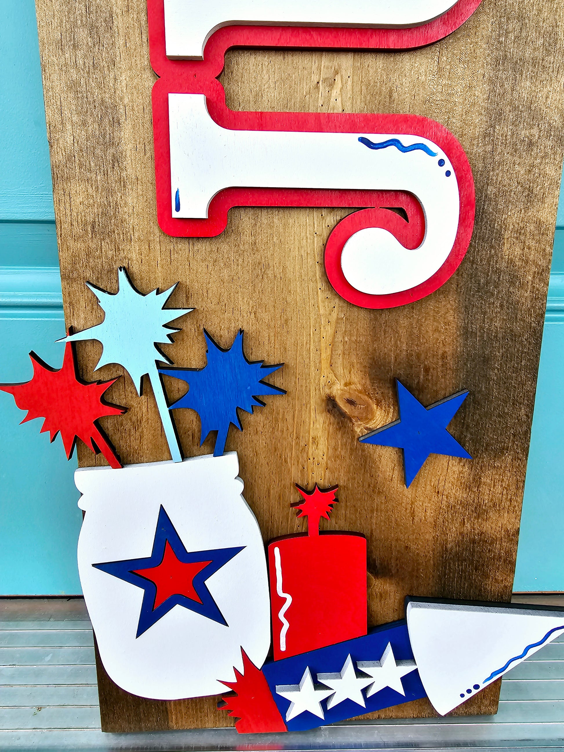 - DIY Patriotic Leaner (3d wood pieces only. No Bow & You would need to purchase the 1x10x48 board to complete project.