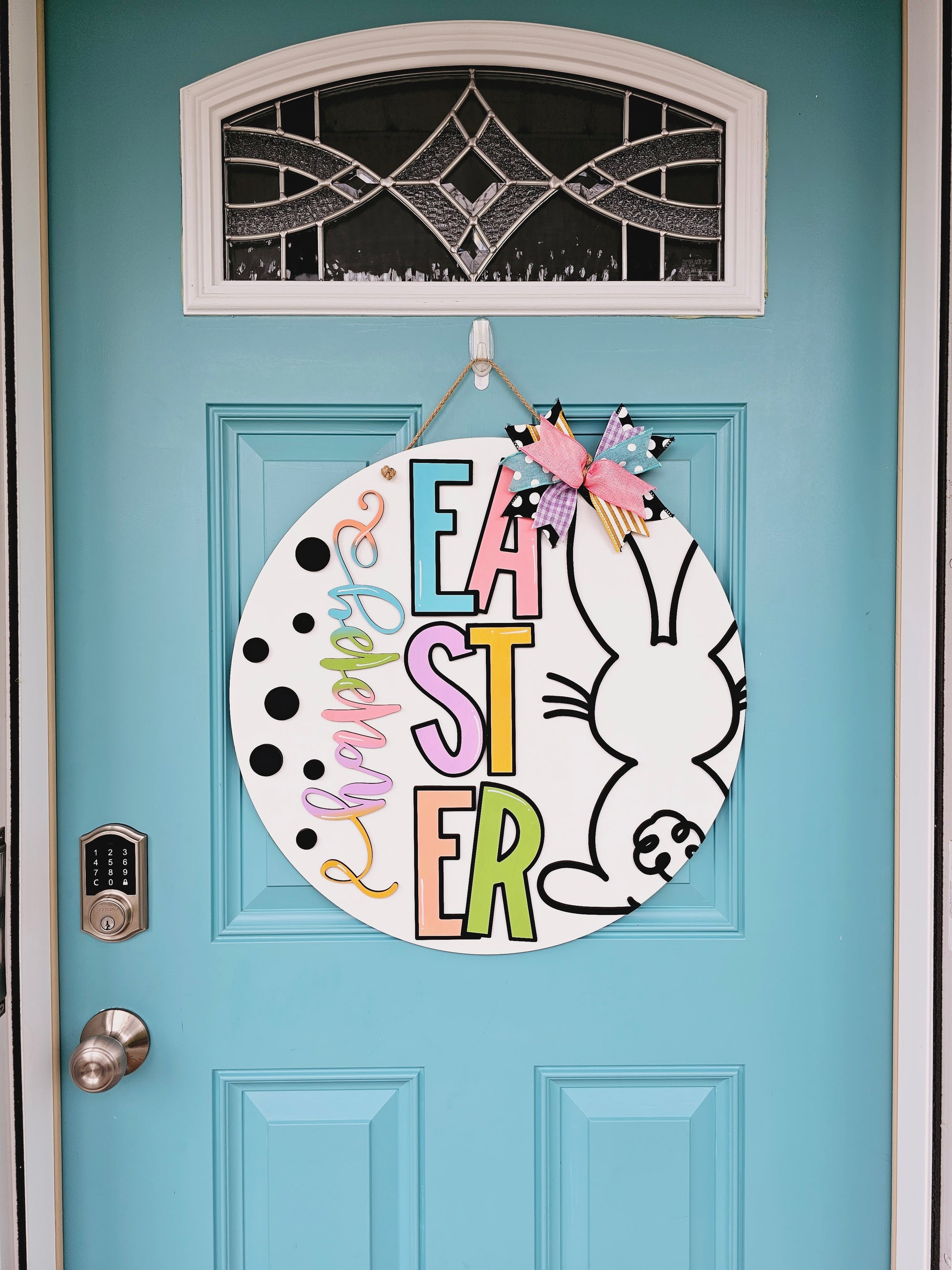 Perfect addition to that front door for Easter! This door hanger is 22" tall and is made with 1/4" wood. There is also an option to buy blank to get crafty or even host you own paint party with friends and family. (Blank option does not come with bow materials, just blank wood pieces)
