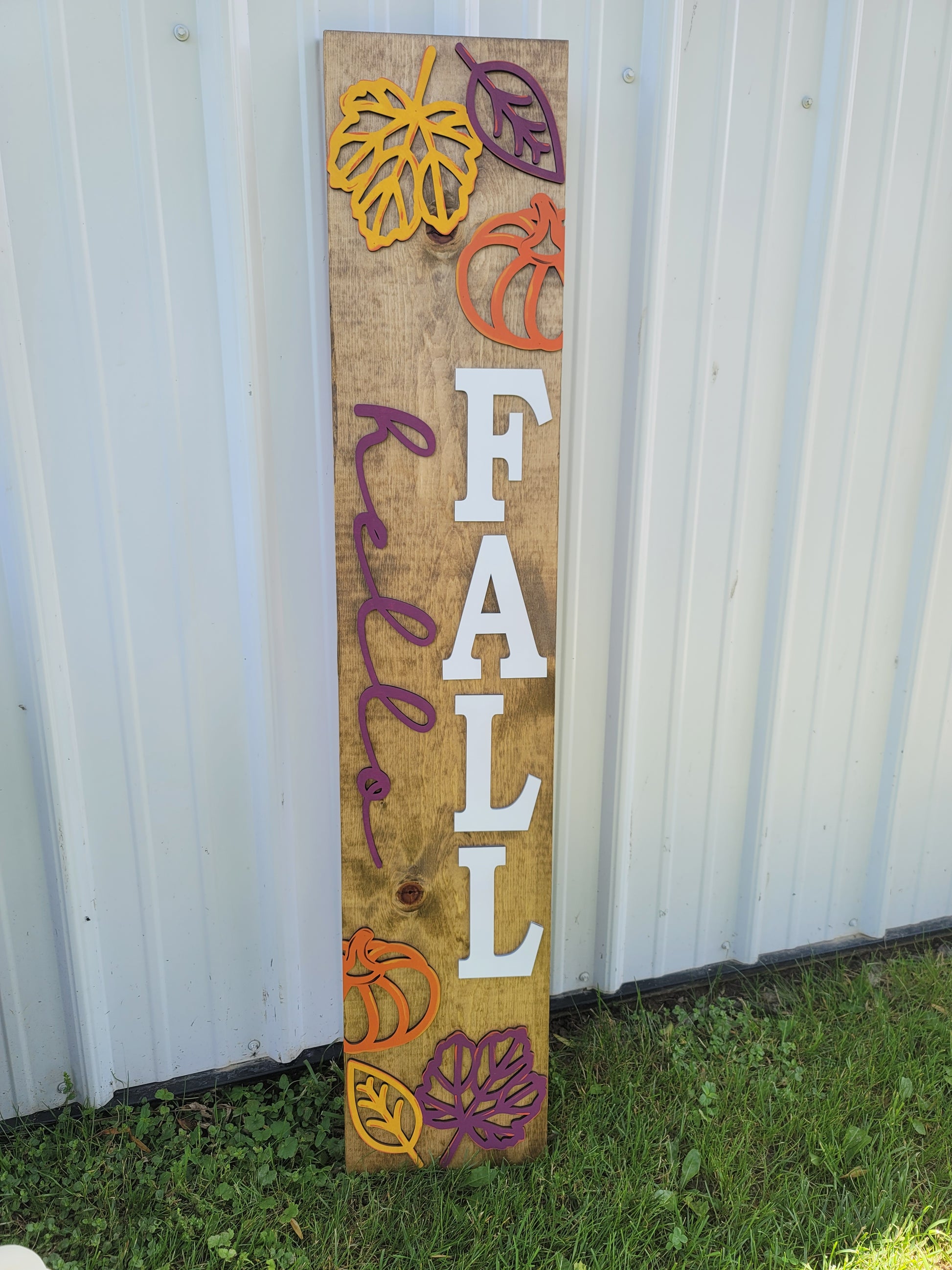 Hello Fall Pumpkin & Leaves Porch Leaner