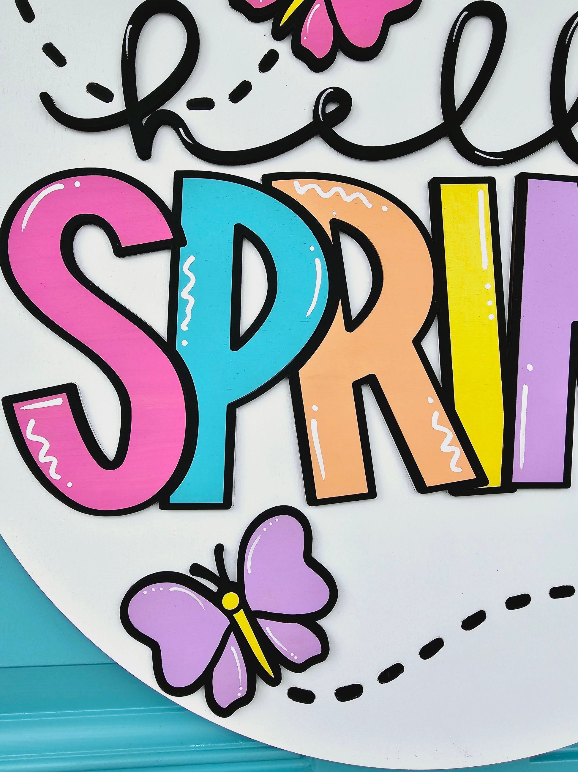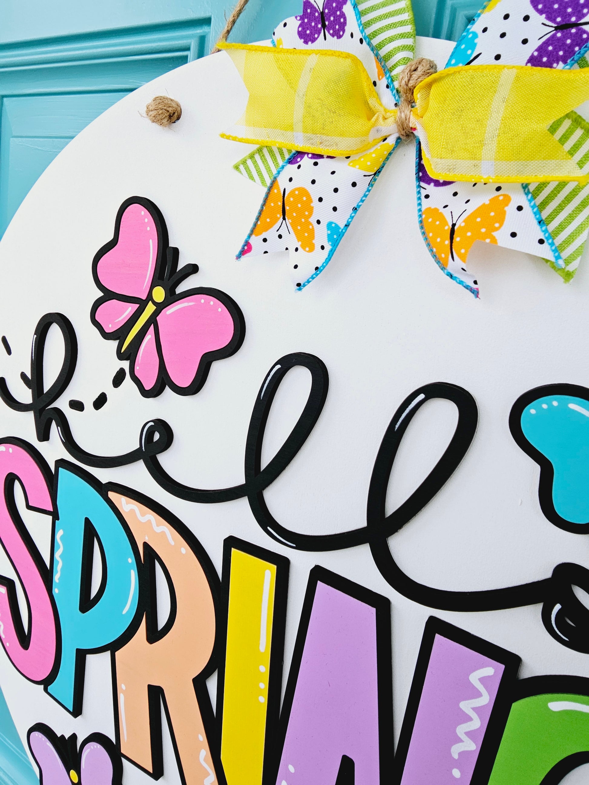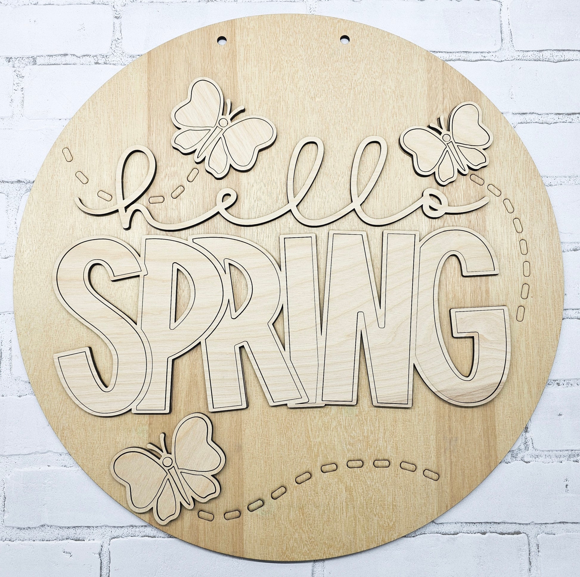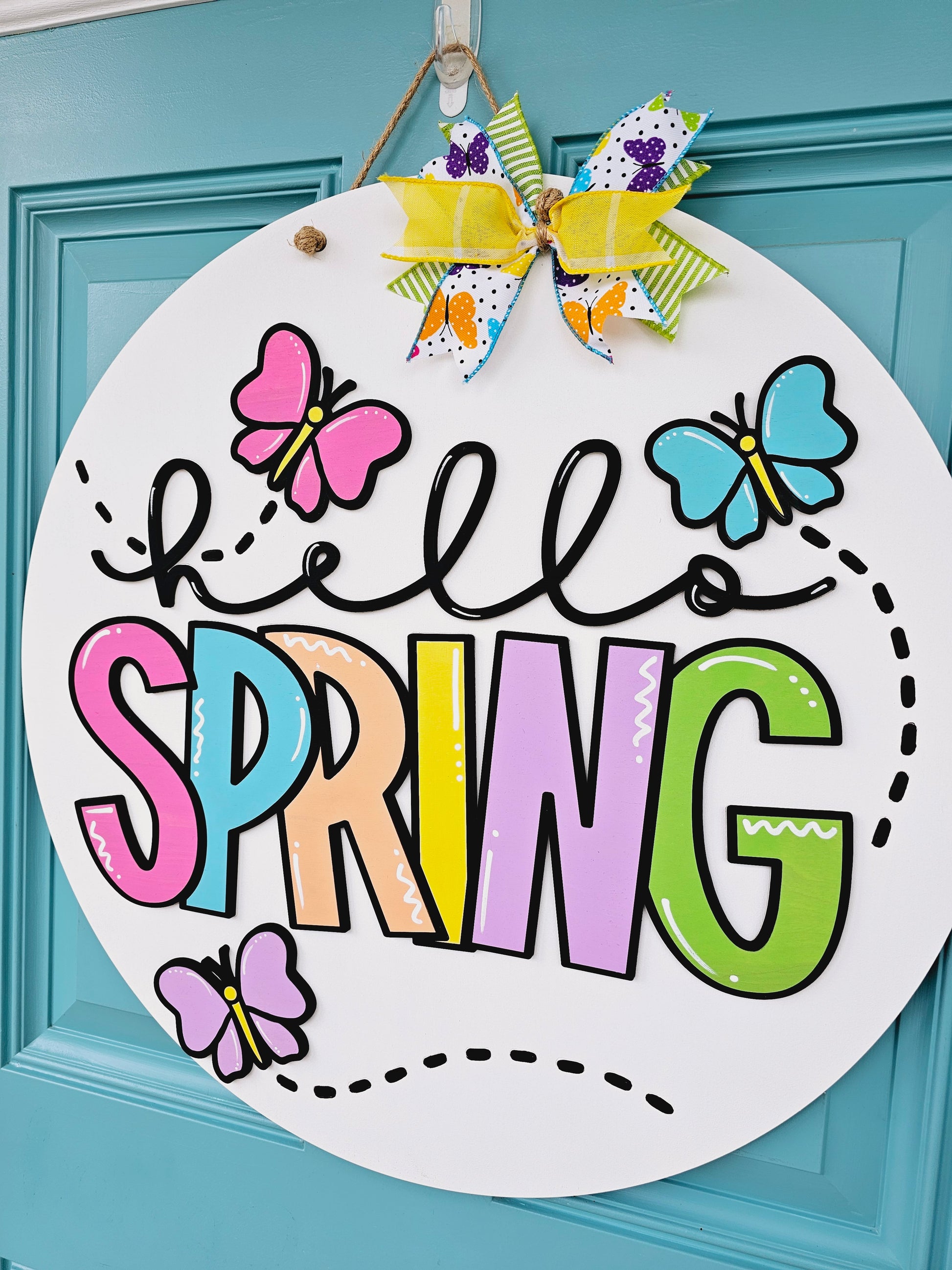 How cute is this spring door hanger?! This door hanger is 22" tall and is made with 1/4" wood. This hanger also includes the multicolored bow that is pictured if you buy completed. There is also an option to buy blank to get crafty or even host you own paint party with friends and family. (Blank option does not come with bow materials, just blank wood pieces)
