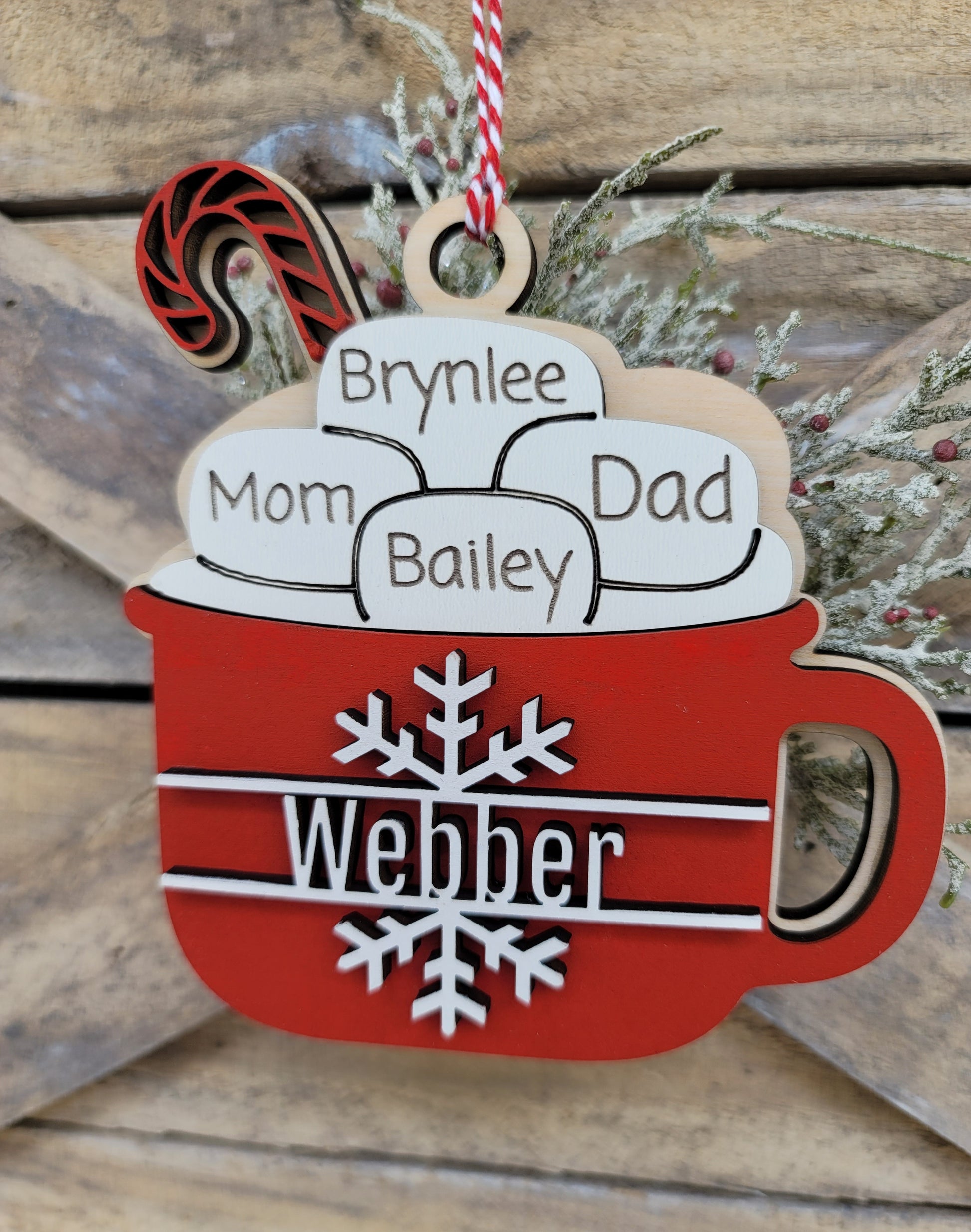 Looking for that yearly family ornament? This comes personalized up to 6 names & measures 4.5" x 4" This comes ready to hang & makes the perfect gift!