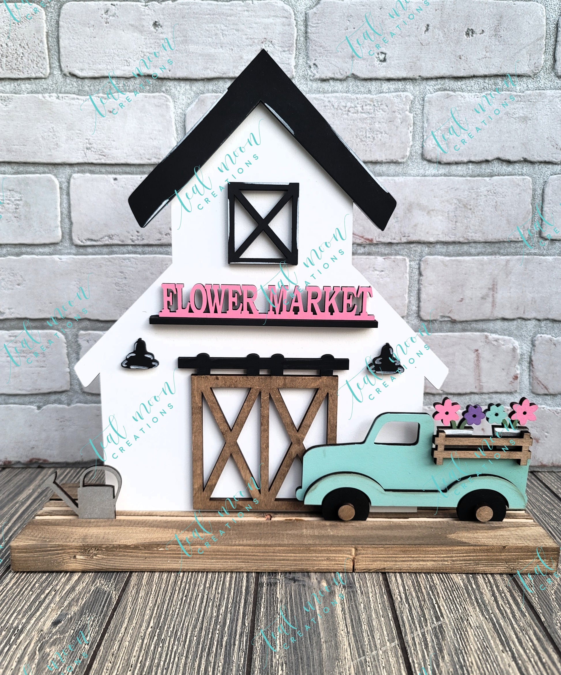 Looking for a fun take on an interchangeable? This barn measures 13" tall and 14" wide including the board. This set comes with all the pieces you see for you to change out for 4 seasons. This is also available as a DIY options with also included the board. Possibilities are endless and this would make an awesome paint night!