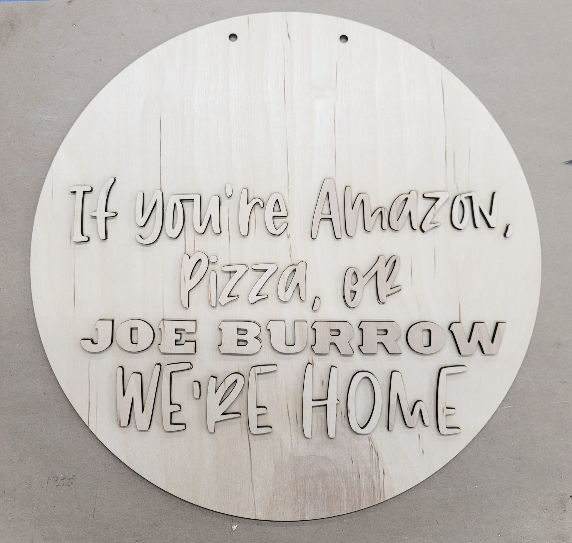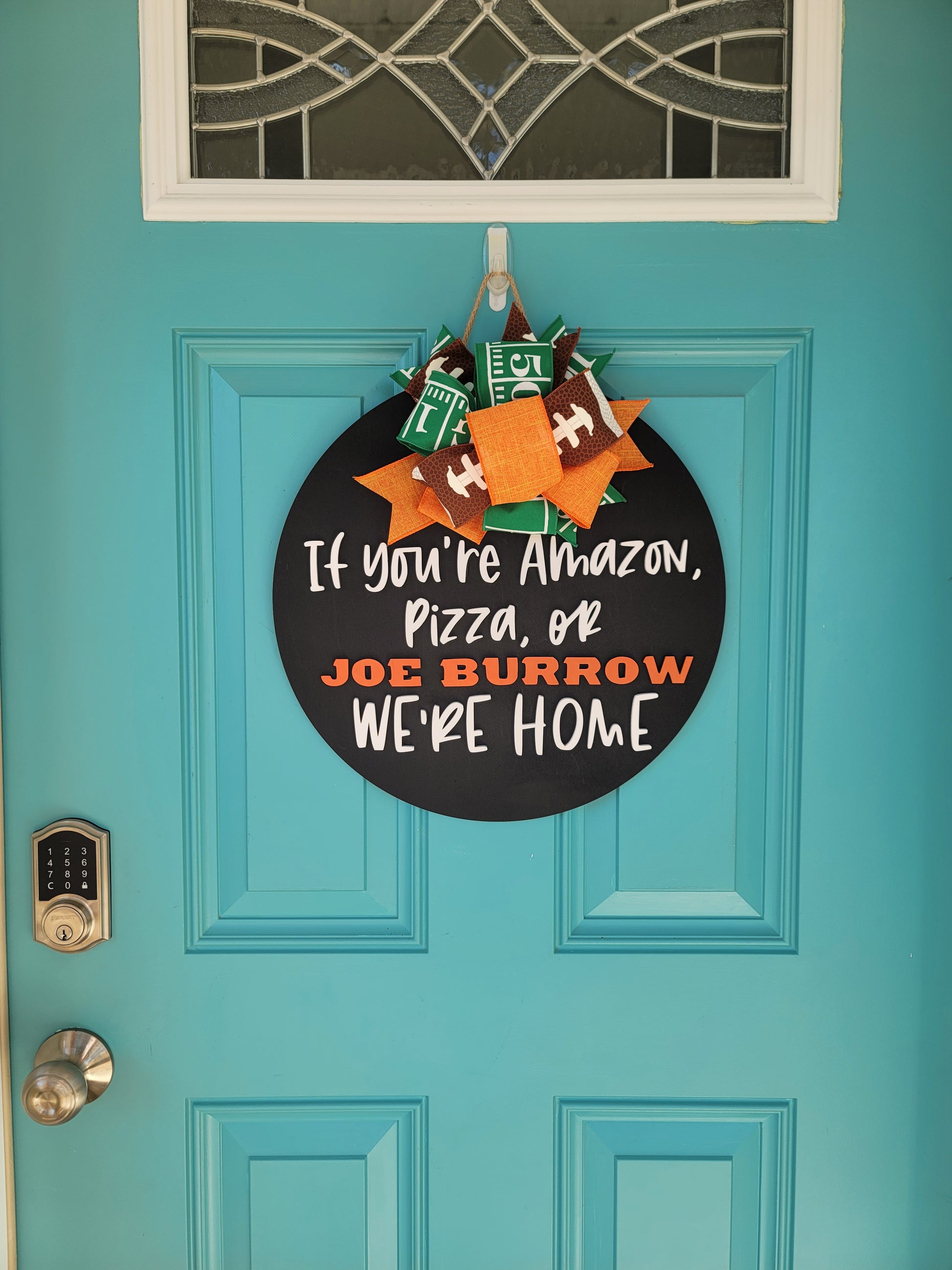 For all my Joe Burrow fans!! This would make the perfect addition to any front door! This door hanger is 22" tall and is made with 1/4" wood. There is also an option to buy blank to get crafty or even host you own paint party with friends and family. (Blank option does not come with bow materials, just blank wood pieces)