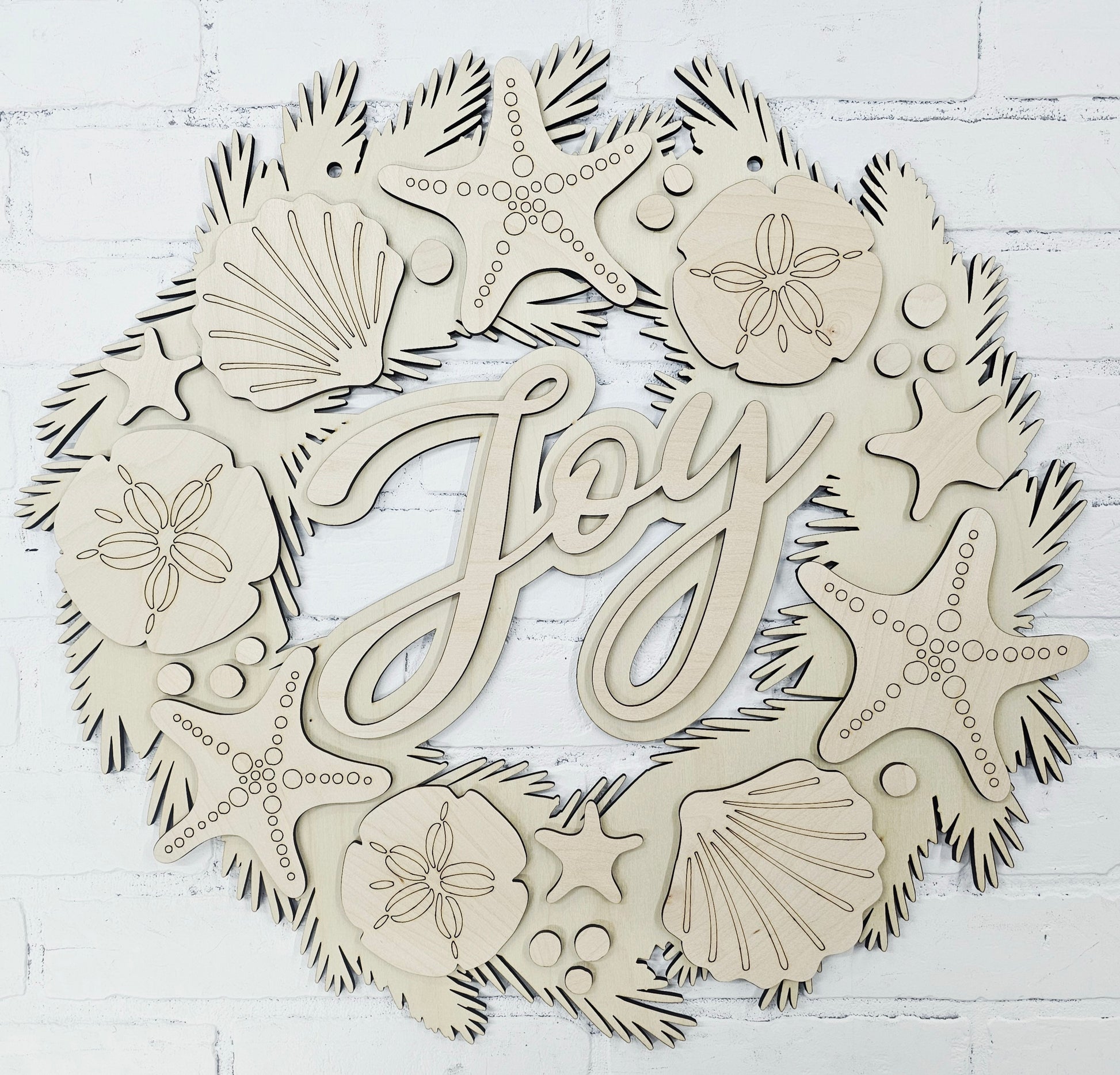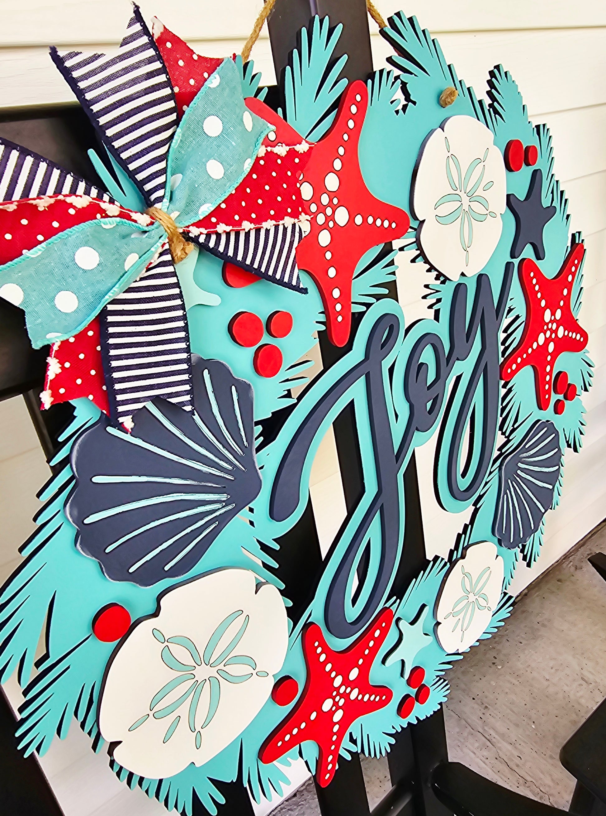 Perfect addition to any front door for the holidays at the beach!! This door hanger is 22" tall and is made with 1/4" wood. There is also an option to buy blank to get crafty or even host you own paint party with friends and family. (Blank option does not come with bow materials, just blank wood pieces)