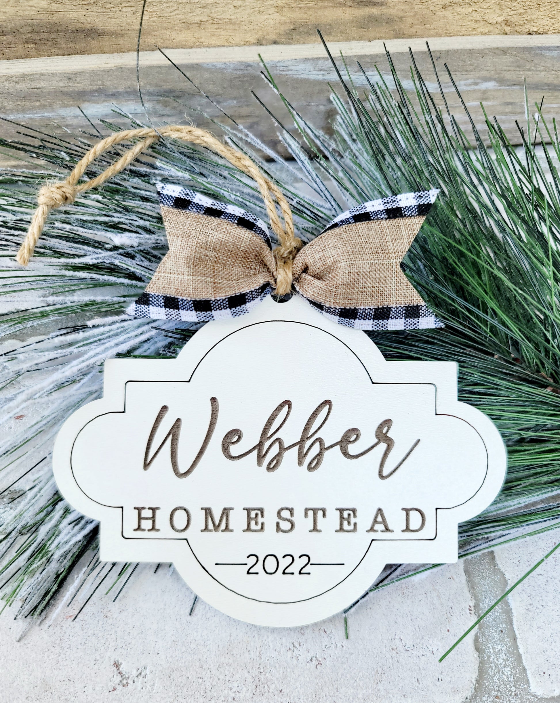 Simple personalized ornament! It measures 4" x5" & comes with a bow & ready to hang with the current year. These make the perfect gift!