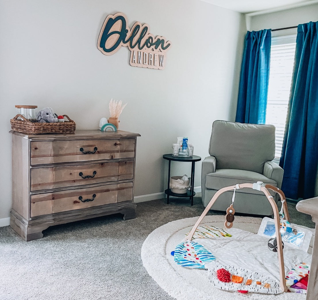 Looking to add a name to your nursery, home or even business? These make the perfect addition to any room for any occasion! These are available in roughly 3 different sizes. 18", 24" & 36". Please leave colors for background, first & middle name. Make sure to double check your spelling as we copy & paste the names!