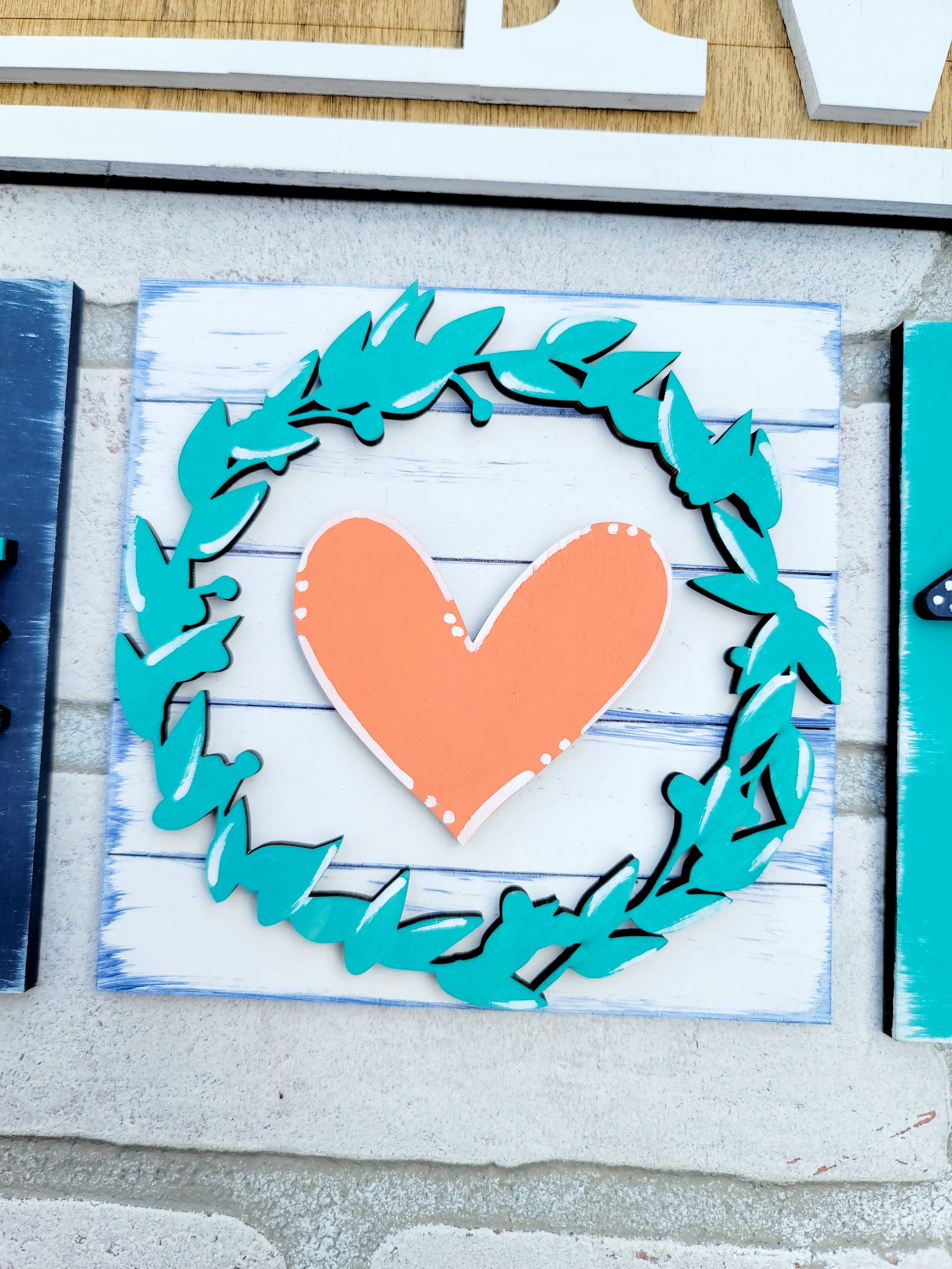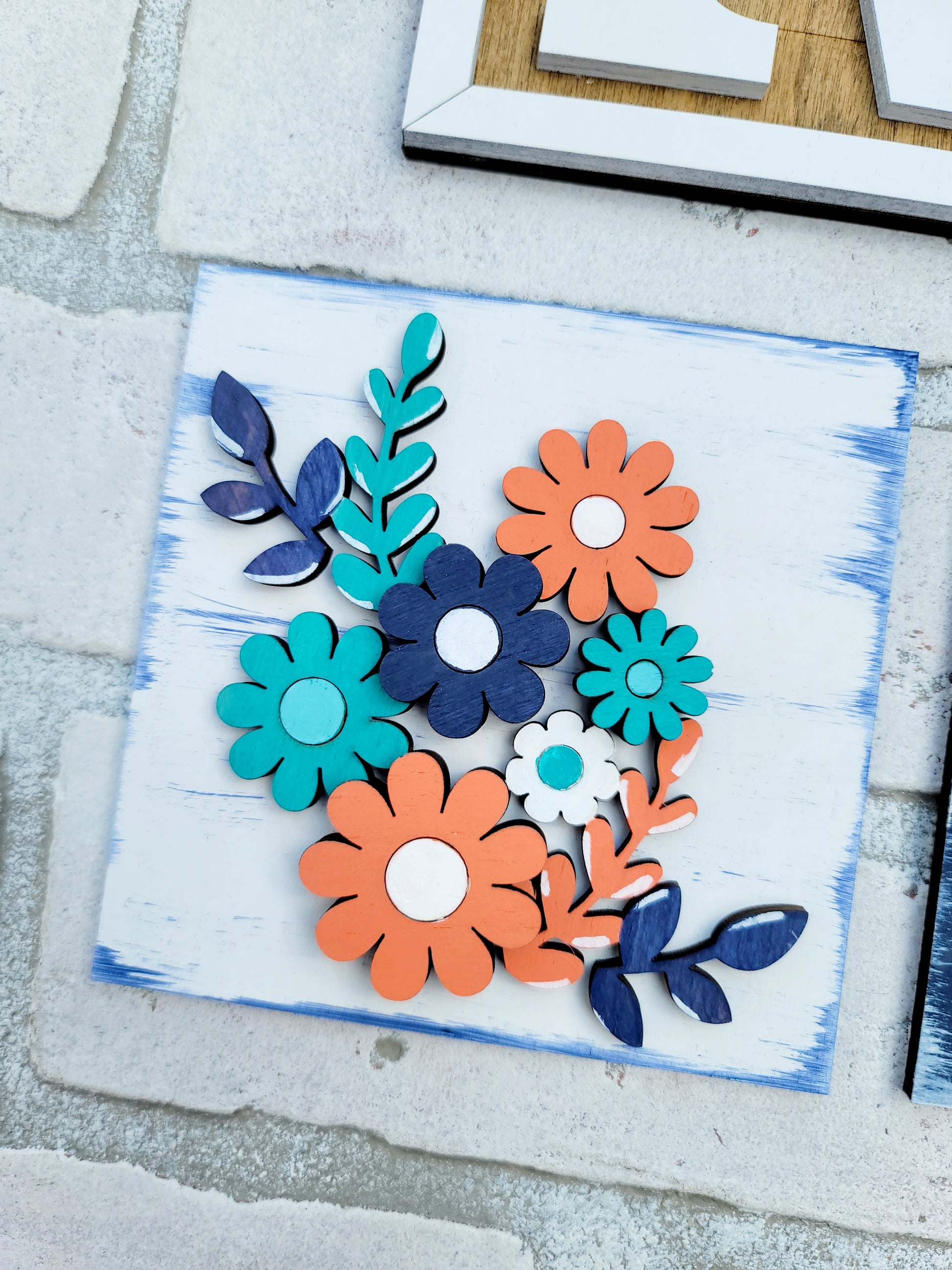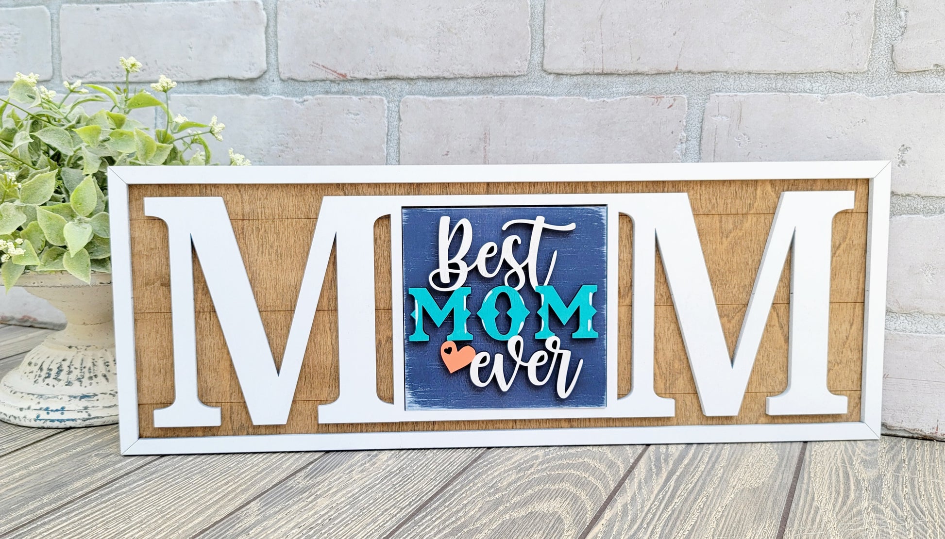 Looking for a unique gift for mom? This is the perfect option to use year-round. This sign measures 17" x 6.5" and comes with 4 interchangeable squares measuring 4.5" each. It also comes with an easel stand if you choose to use. This is also available as a DIY to paint yourself (wood pieces ONLY) Would be a great gift for the kids to paint!
