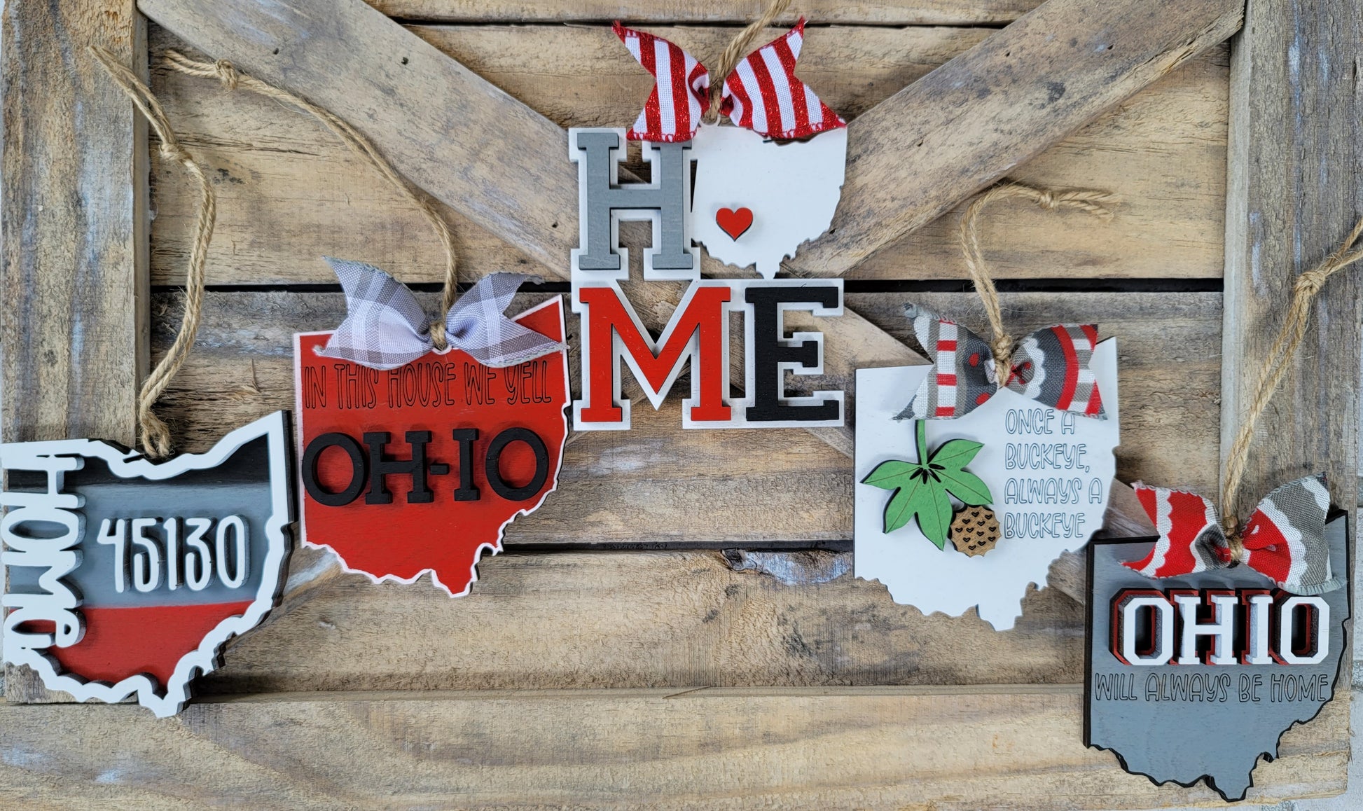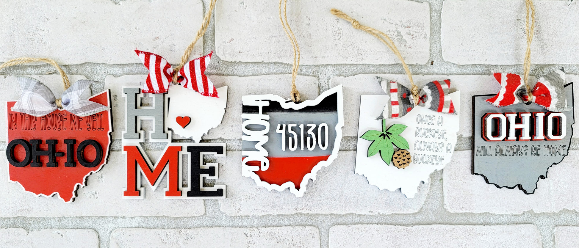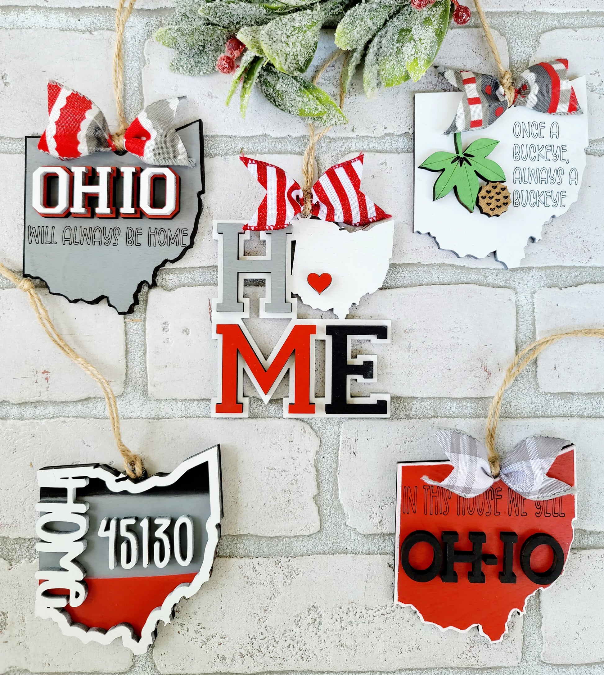 Ohio State Fans?! There are 5 options of ornaments all measuring 3.5'x 4" These would also make great gifts!