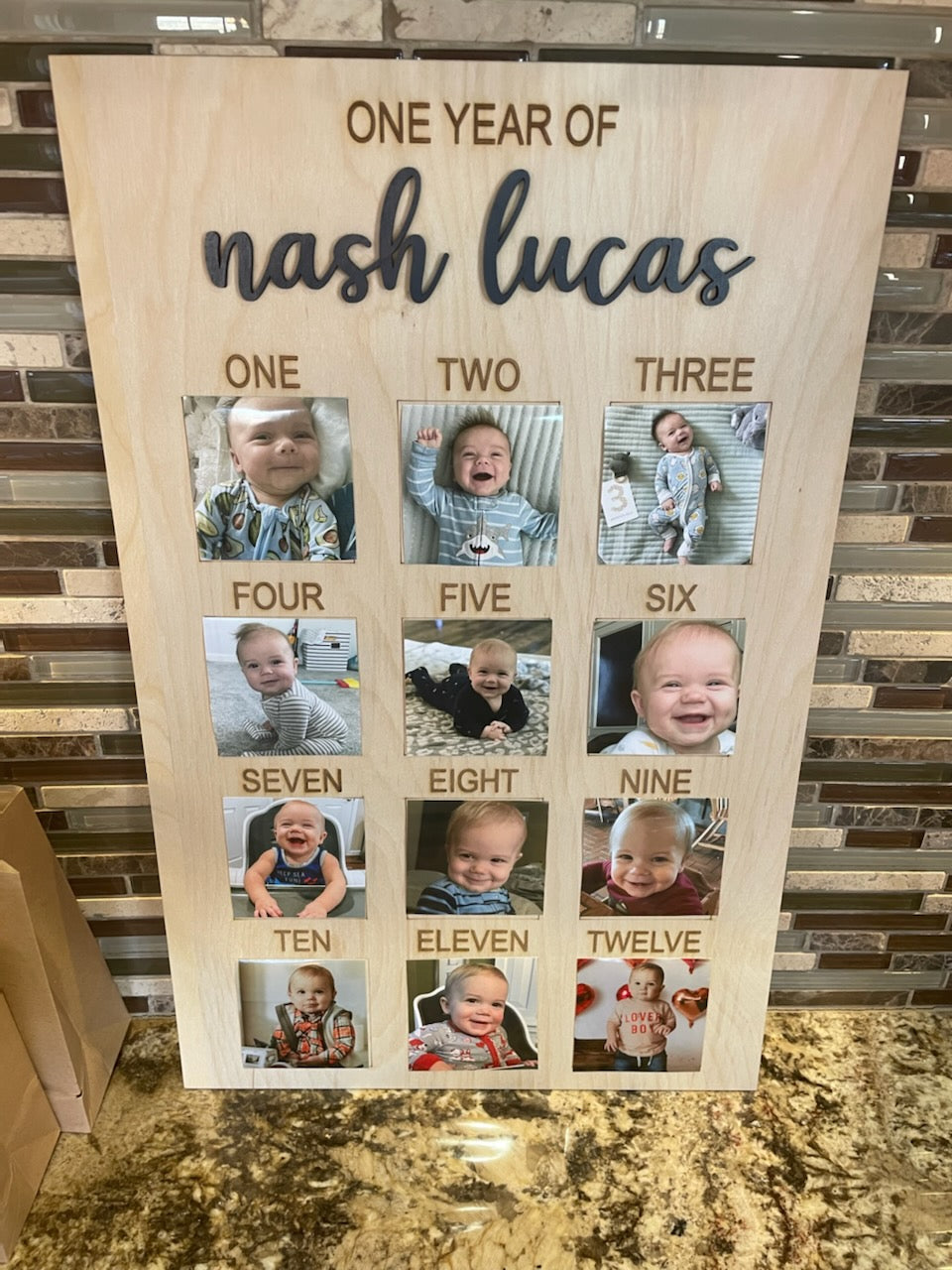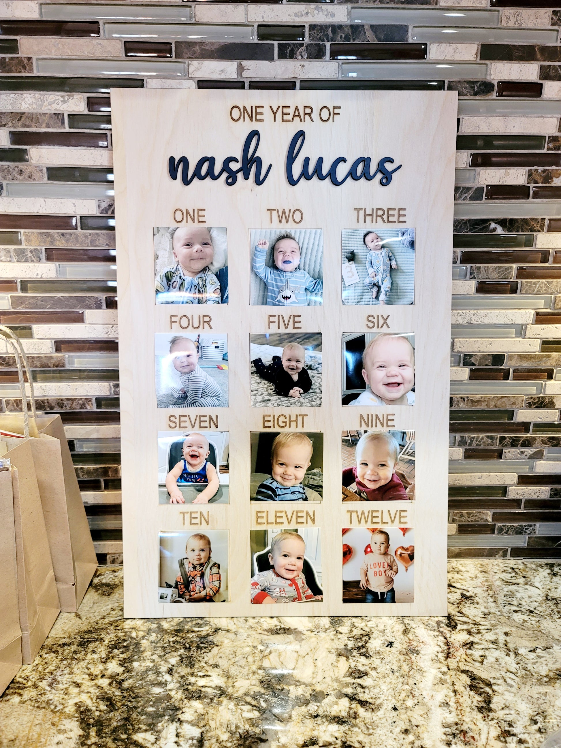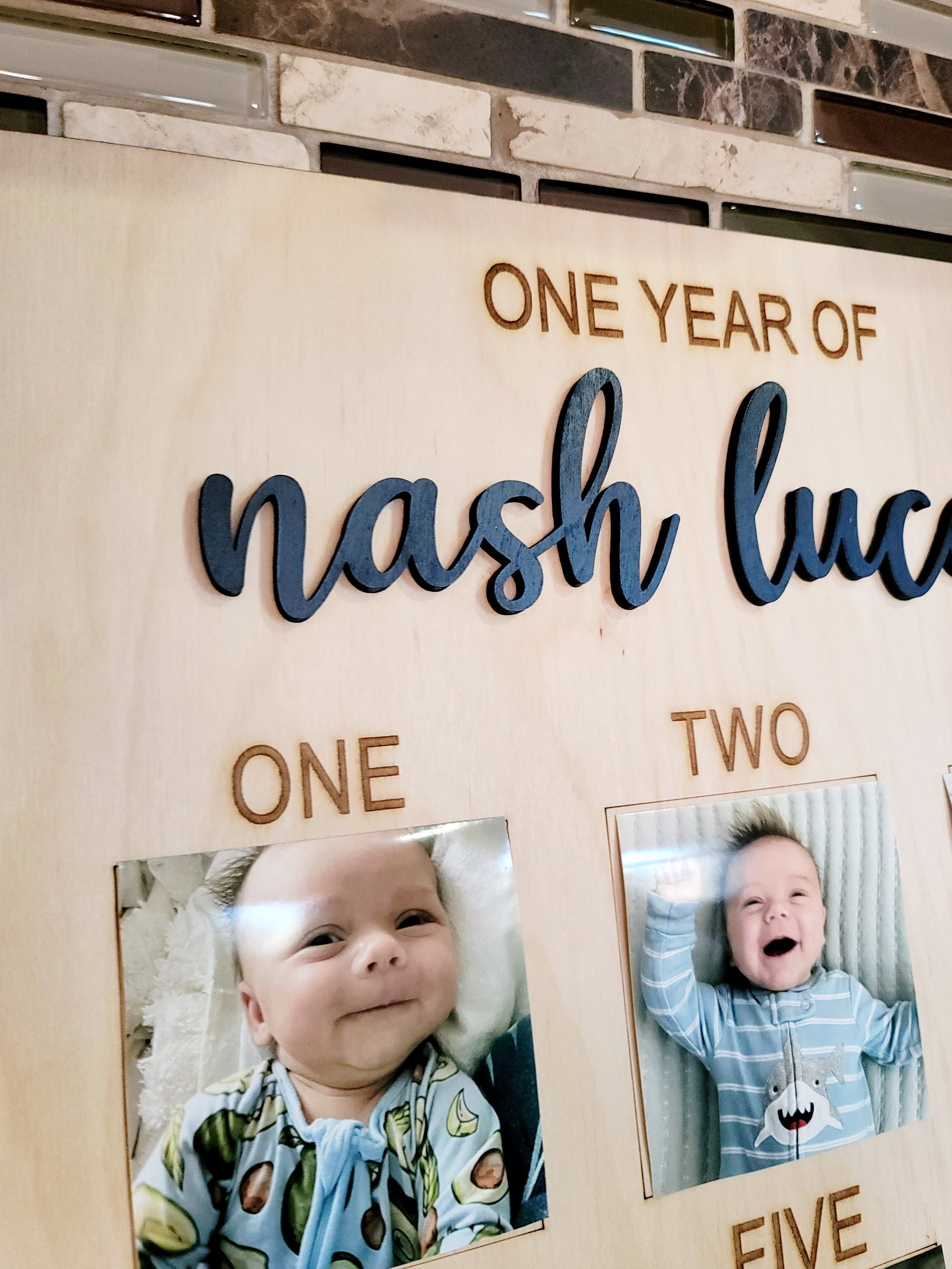 This "ONE YEAR OF" board is perfect to hang in your nursery or display at your child's first birthday party! This is a great way to showcase those monthly pictures you have taken for the first year of their life! They are made to order with your little one's name on the board in your choice of color.