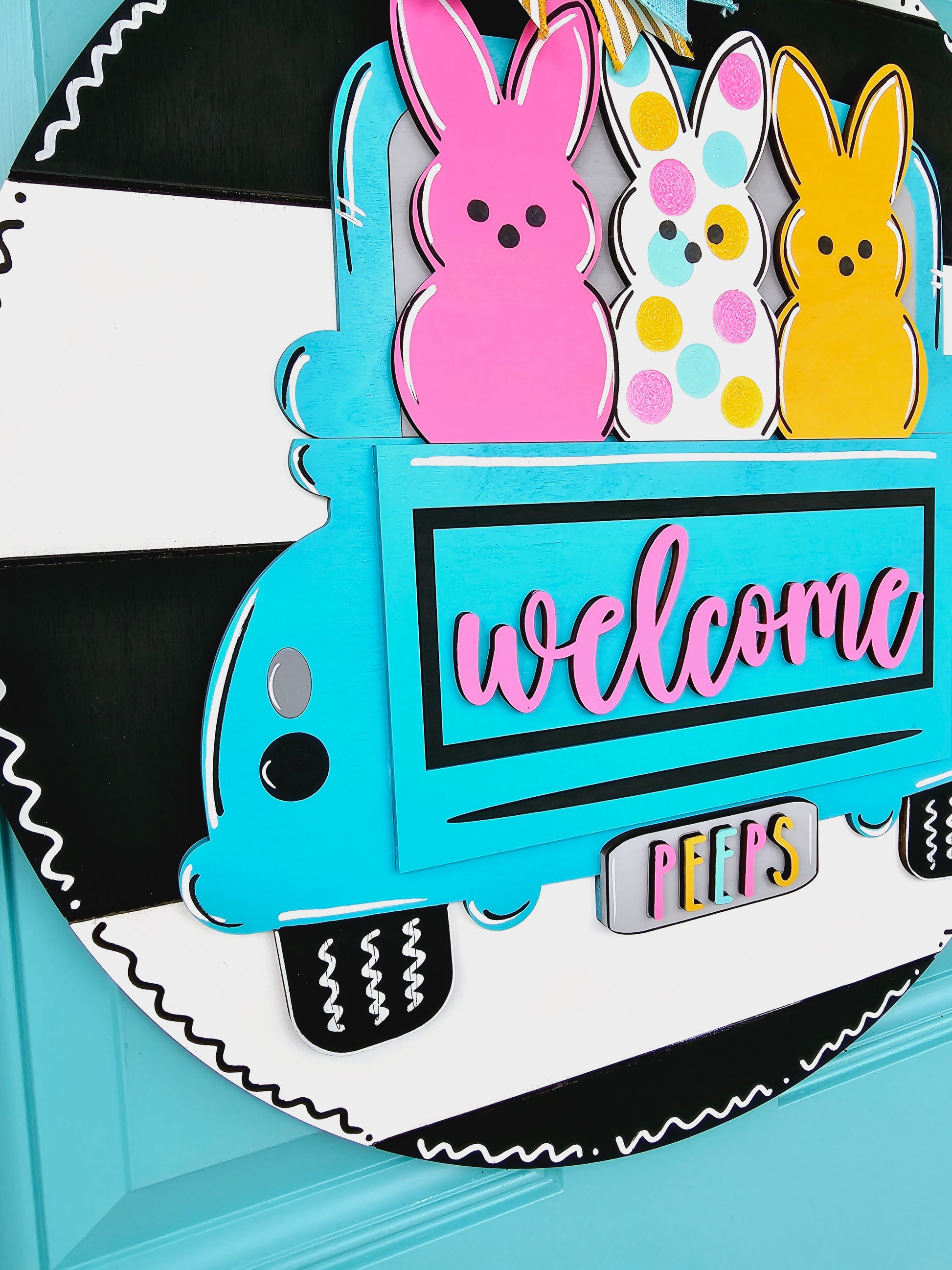 Perfect addition to that front door for Easter! This door hanger is 22" tall and is made with 1/4" wood. It also has 3d pieces including the wording & the decorative pieces. There is also an option to buy blank to get crafty or even host you own paint party with friends and family. (Blank option does not come with bow materials, just blank wood pieces)