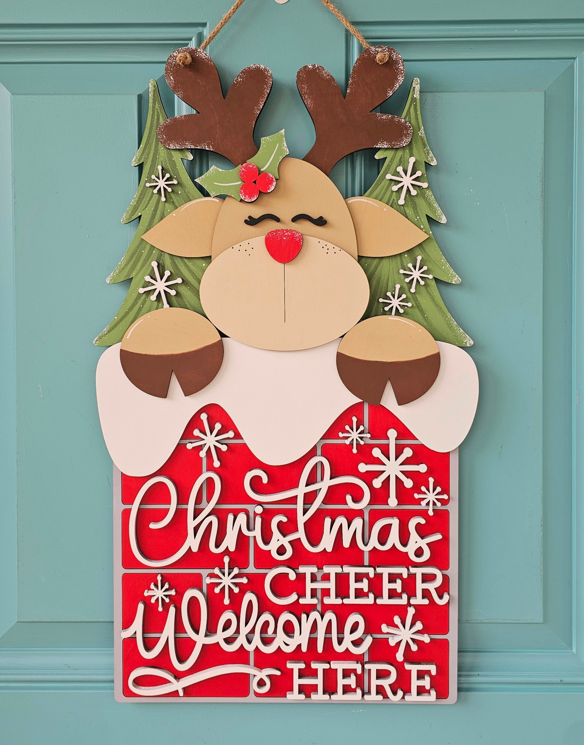 Perfect addition to that front door for Christmas! This door hanger is 22" tall and is made with 1/4" wood. It also has 3d pieces including the wording & the decorative pieces. There is also an option to buy blank to get crafty or even host you own paint party with friends and family. (Blank option does not come with bow materials, just blank wood pieces)