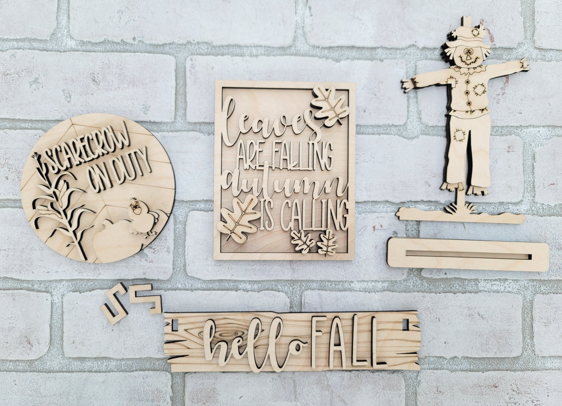 How cute is this set? Perfect addition for your interchangeable crate/shelf sitter if you're decorating for fall! This set includes 4 pieces and the hooks to hang the Hello Fall Sign. These are offered painted or as a DIY Blank option for you to paint however you would like! This listing is for the inserts only. Crate/Shelf Sitter sold separately.
