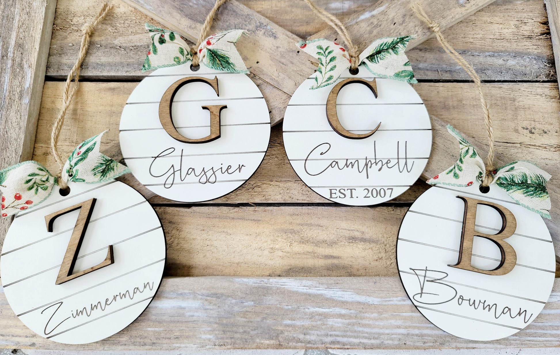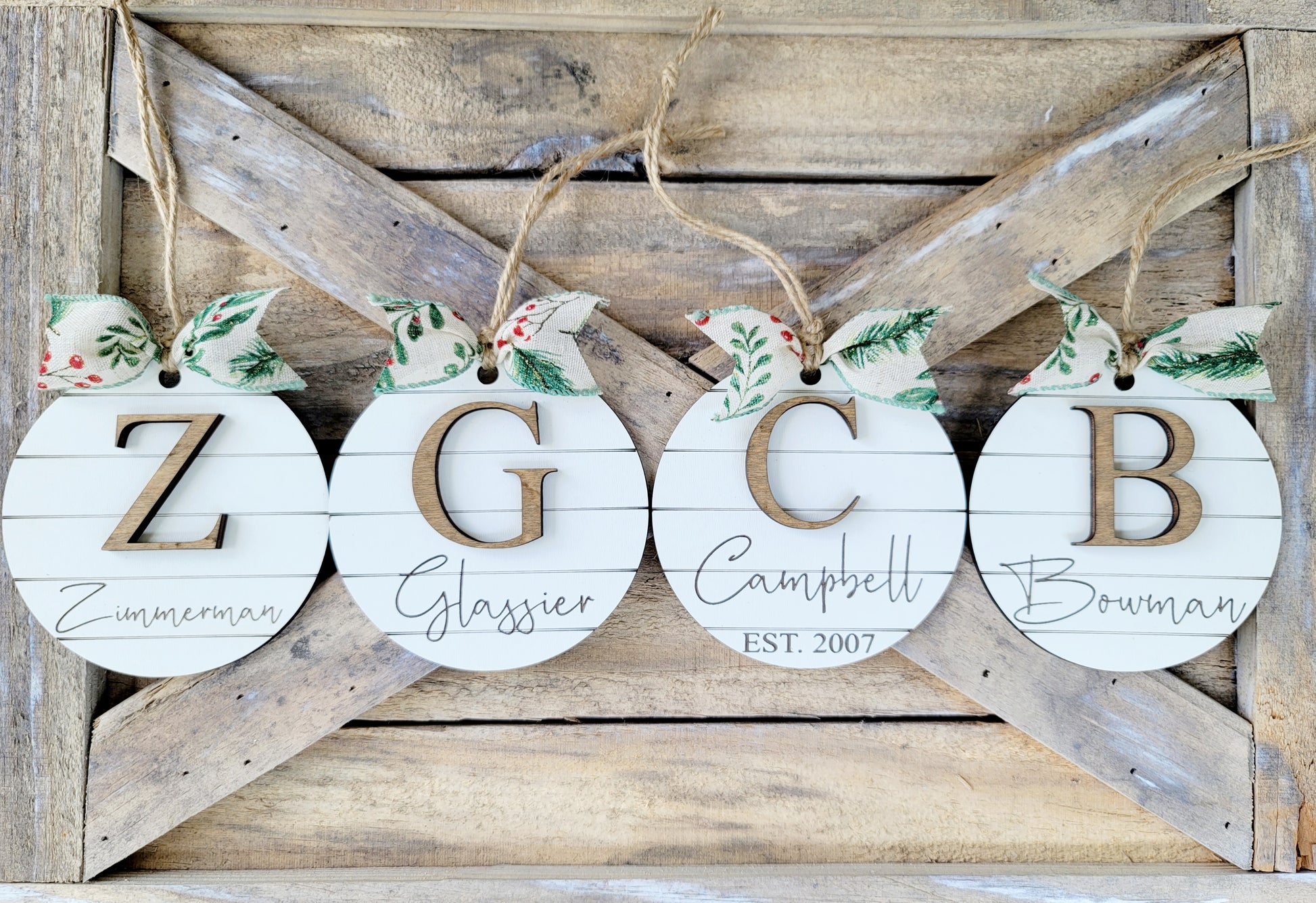 Perfect addition to any tree or as a gift! Ornament measures 4" and comes ready to hang! You can personalize with last name & you can also add an EST date.