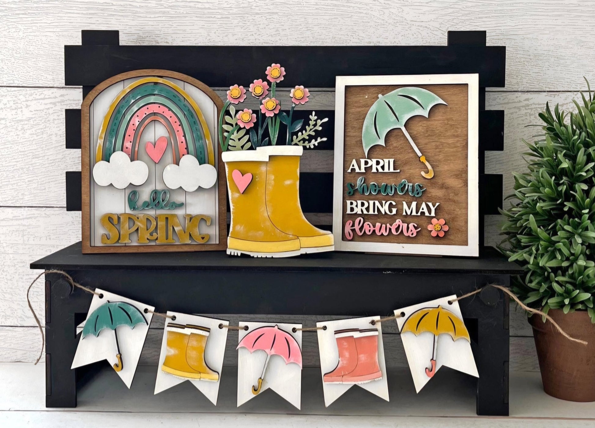 Looking for a fun way to change out the seasons?! These interchangeable pieces come in a set of 4. This is available as a painted and completed set OR as a DIY set for you to paint yourself (wood pieces only) Bench is sold separately.