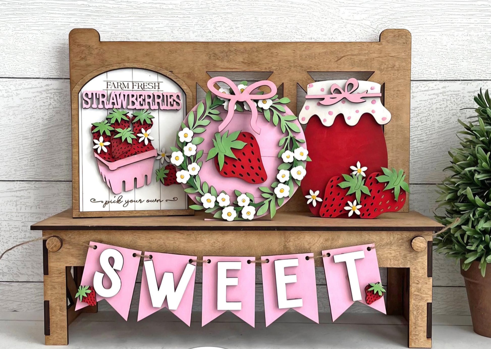 Looking for a fun way to change out the seasons?! These interchangeable pieces come in a set of 4. This is available as a painted and completed set OR as a DIY set for you to paint yourself (wood pieces only) Bench is sold separately.