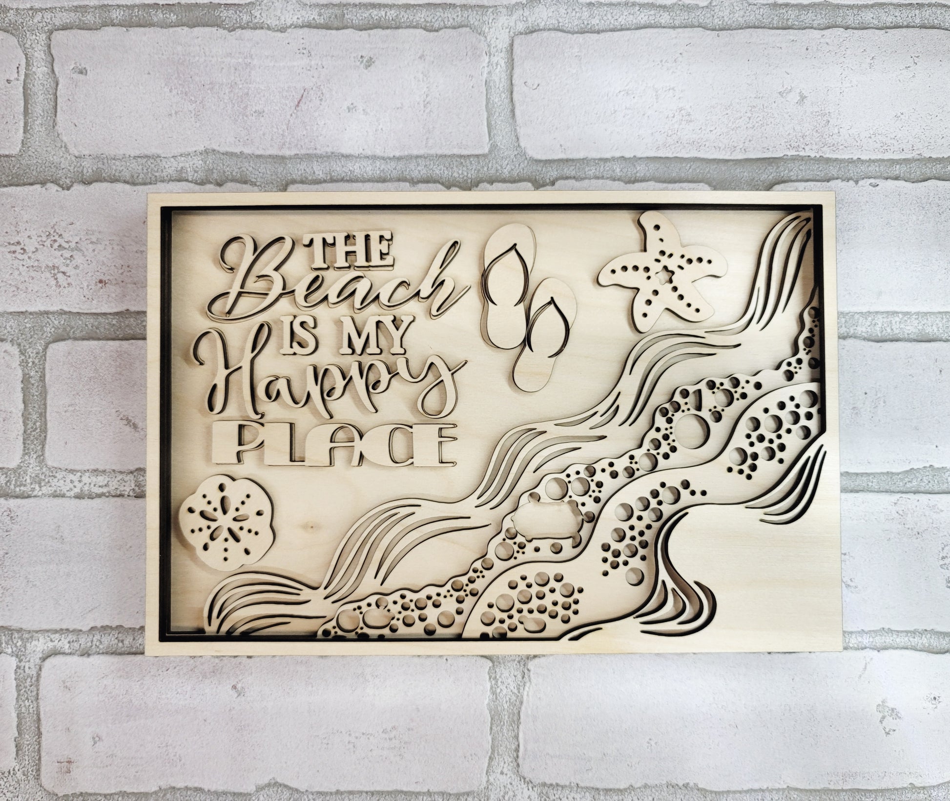 Looking for that perfect piece to tuck in with your beachy decor? This sign measures 8x11. All words & design are 3D as a layered look. We do also offer this as a blank sign kit which included each layer and the 3d pieces unpainted. Perfect beachy DIY project!!