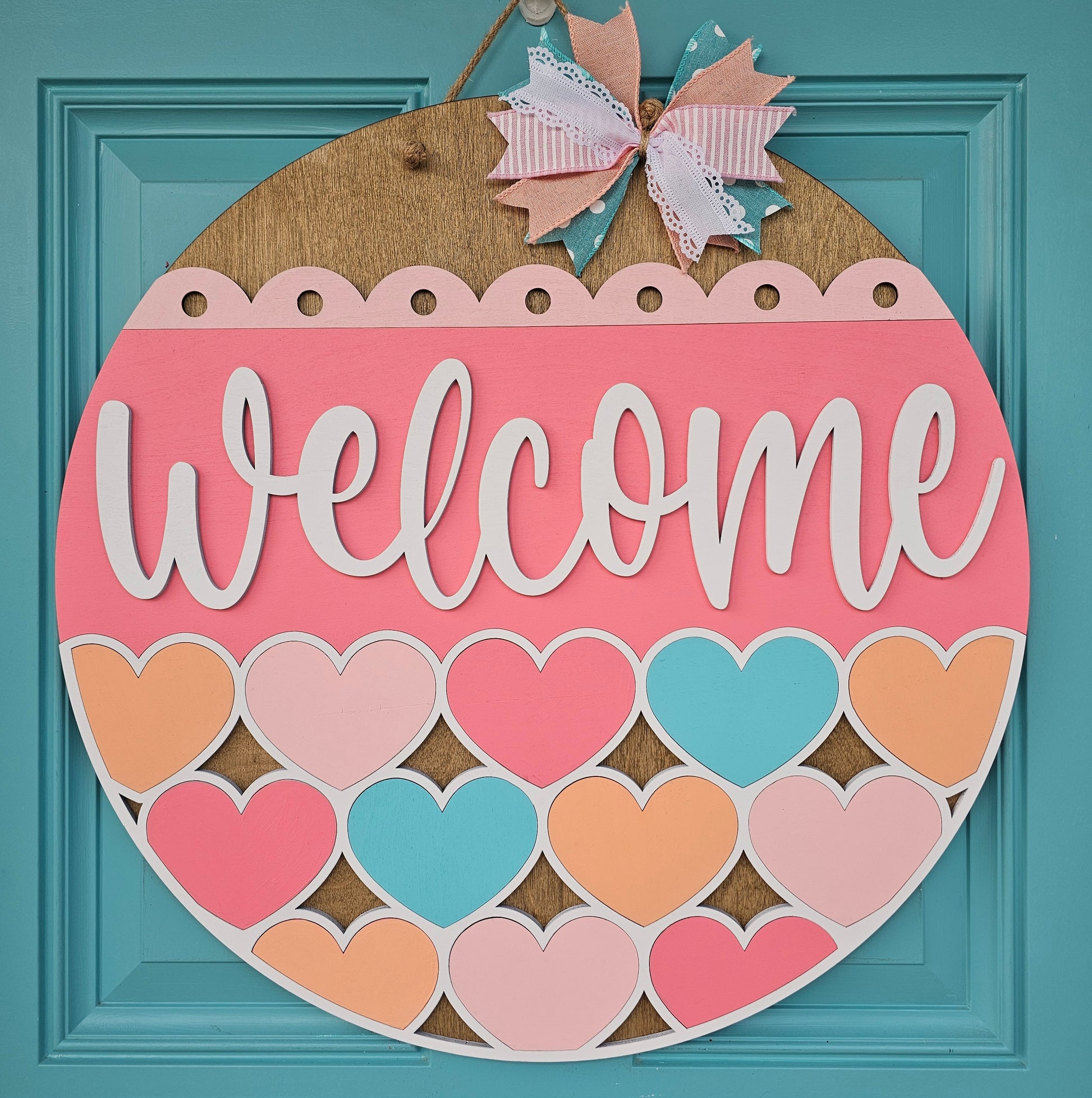 Welcome Stacking Hearts Door Hanger
